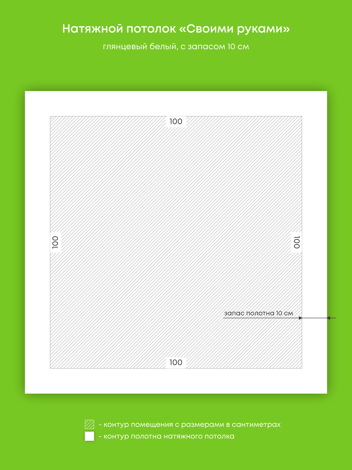 Натяжной потолок белый глянцевый, изготовленный по индивидуальным размерам покупателя, для ванной площадью 1 м2