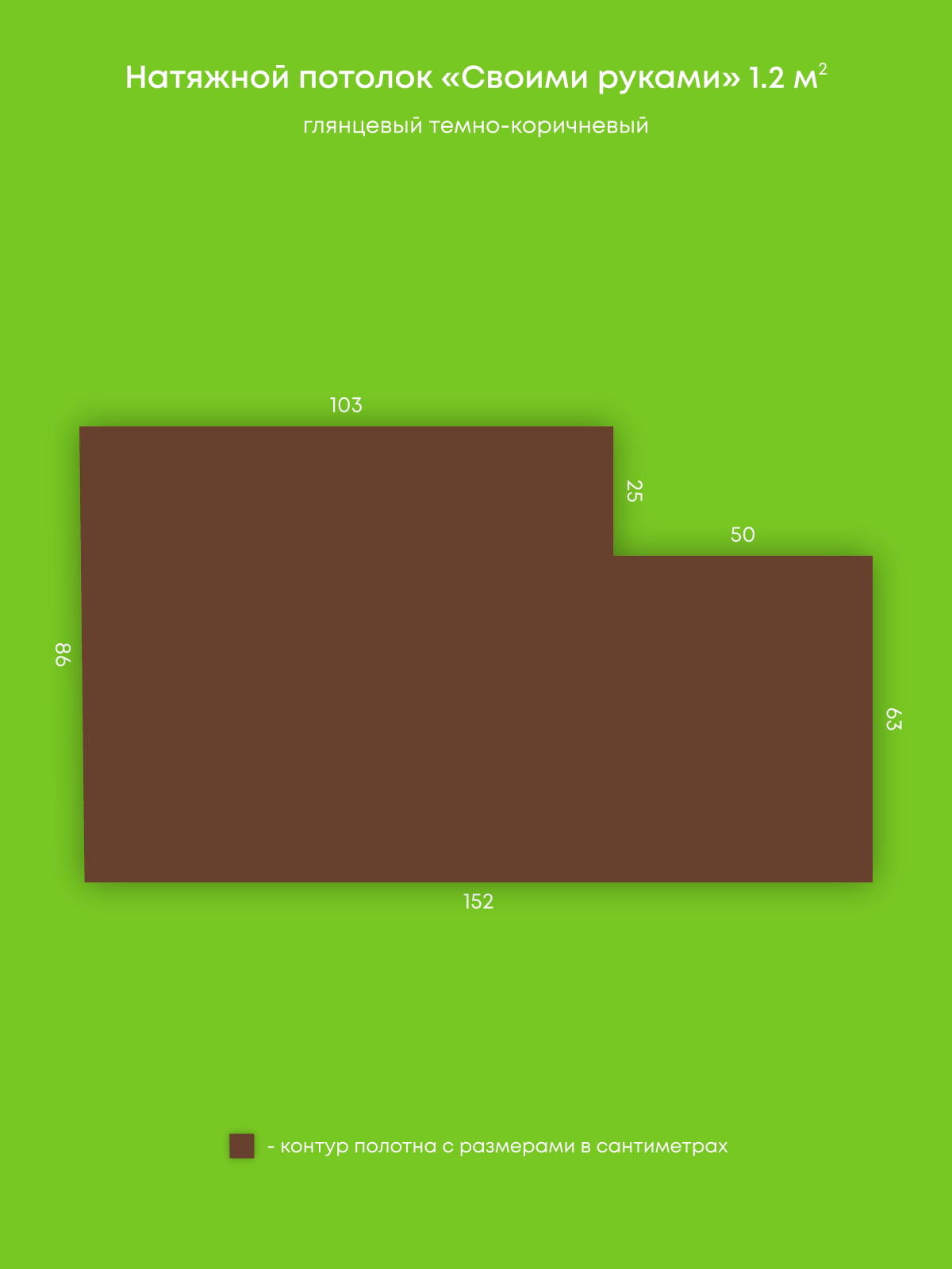 Натяжной потолок темно-коричневый глянцевый, изготовленный по индивидуальным размерам покупателя, для помещения площадью 1.2 м2