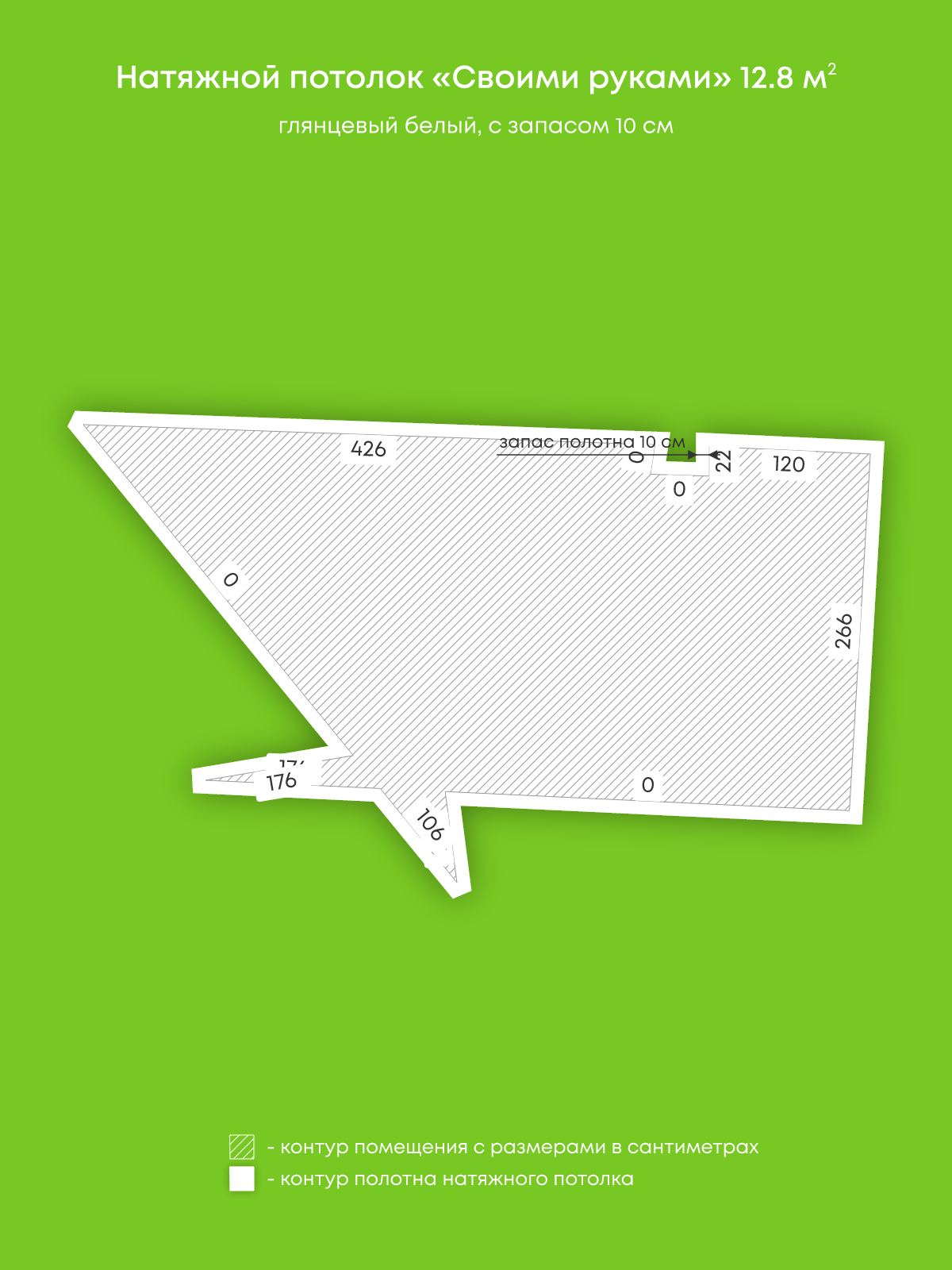 Натяжной потолок белый глянцевый, изготовленный по индивидуальным размерам покупателя, для комнаты площадью 12.8 м2