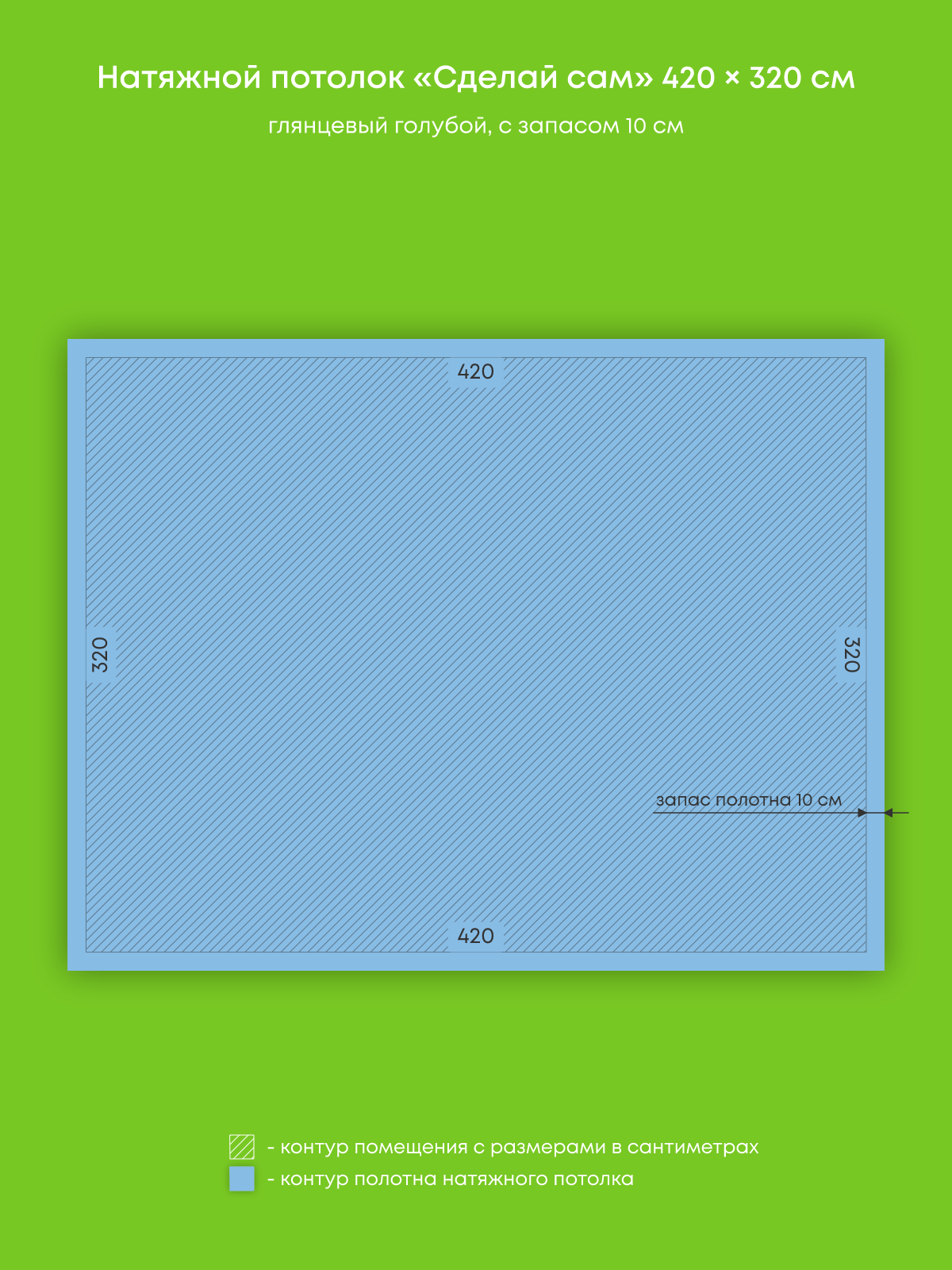 Натяжной потолок голубой глянцевый, изготовленный по индивидуальным размерам покупателя, для спальни площадью 13.4 м2