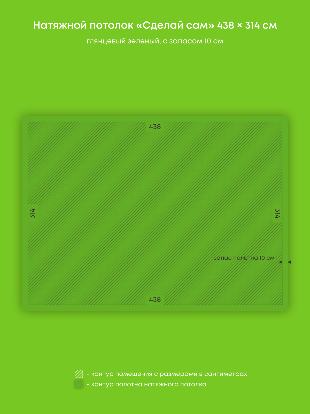 Натяжной потолок зеленый глянцевый, изготовленный по индивидуальным размерам покупателя, для спальни площадью 13.8 м2