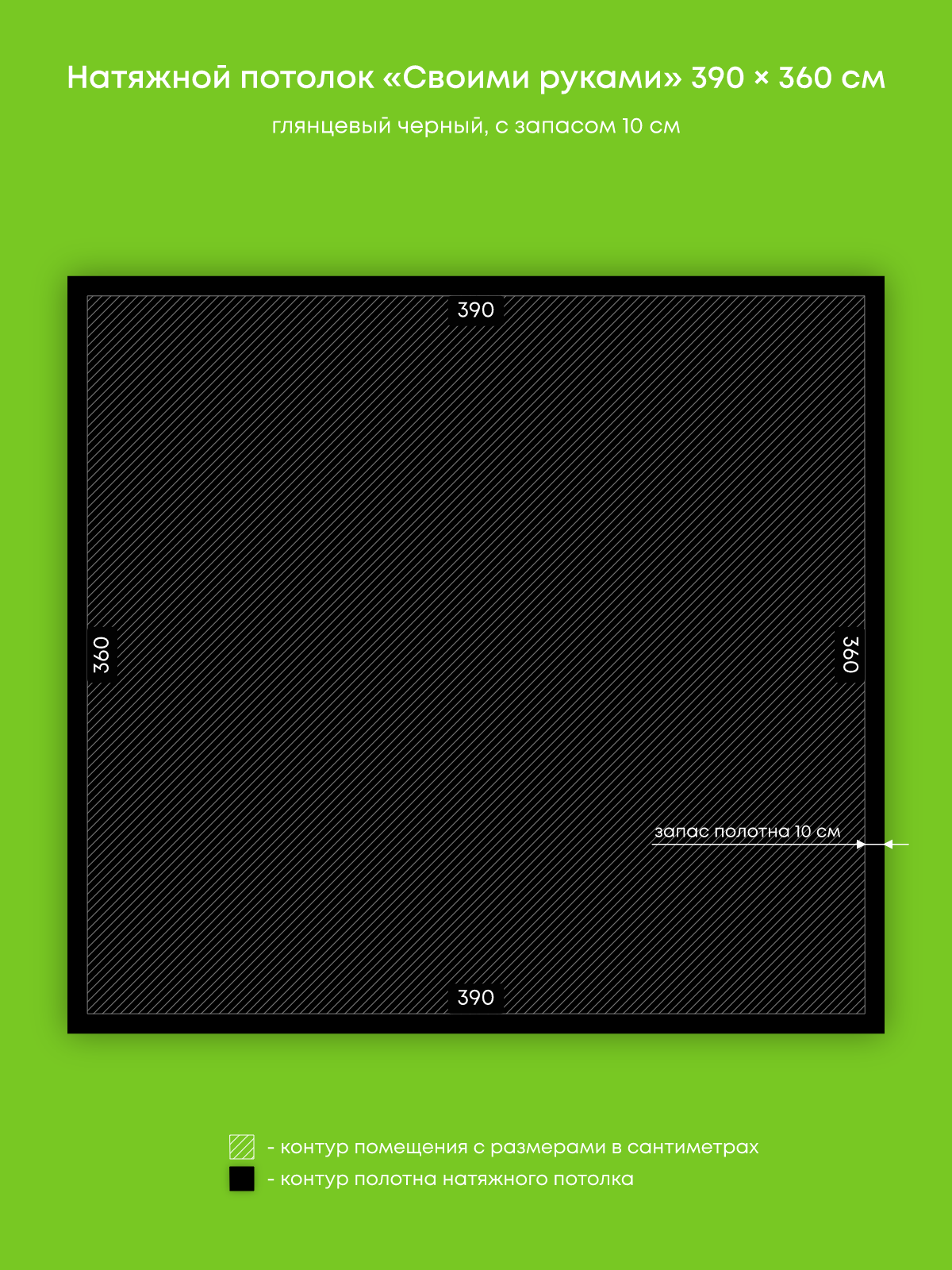 Натяжной потолок черный глянцевый, изготовленный по индивидуальным размерам покупателя, для гостиной площадью 14 м2