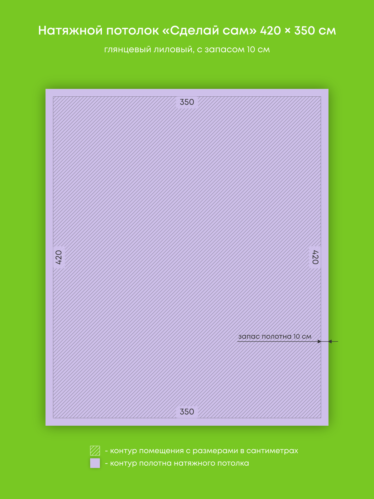 Натяжной потолок лиловый глянцевый, изготовленный по индивидуальным размерам покупателя, для комнаты площадью 14.7 м2