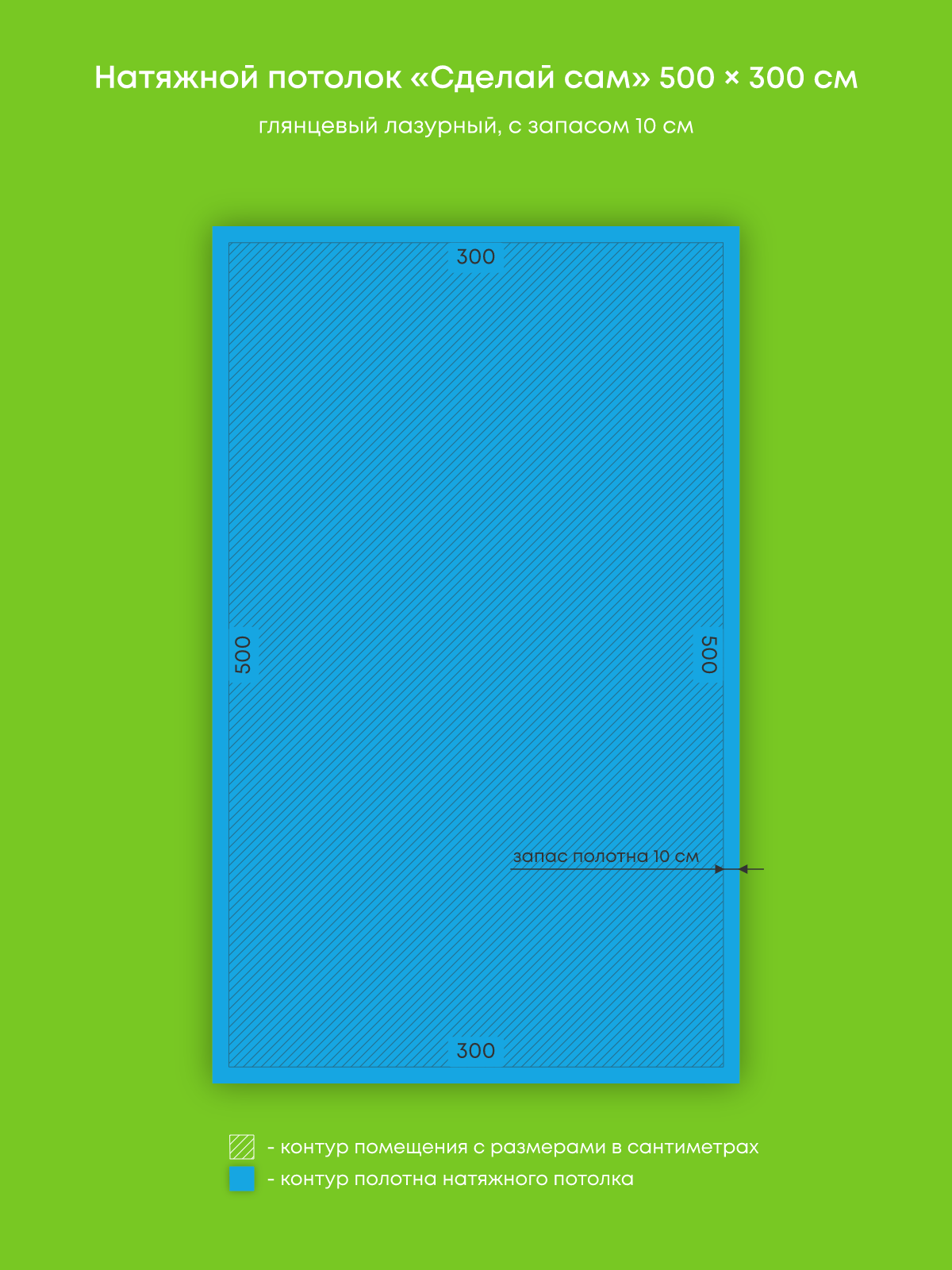 Натяжной потолок лазурный глянцевый, изготовленный по индивидуальным размерам покупателя, для спальни площадью 15 м2