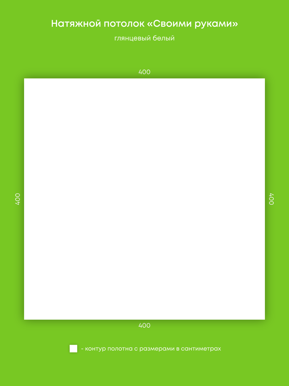 Натяжной потолок белый глянцевый, изготовленный по индивидуальным размерам покупателя, для помещения площадью 16 м2