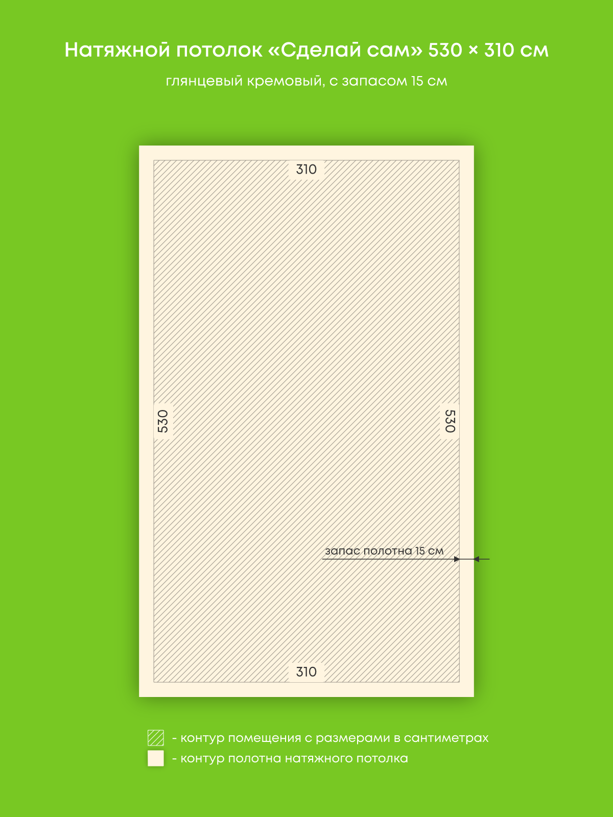 Натяжной потолок кремовый глянцевый, изготовленный по индивидуальным размерам покупателя, для комнаты площадью 16.4 м2