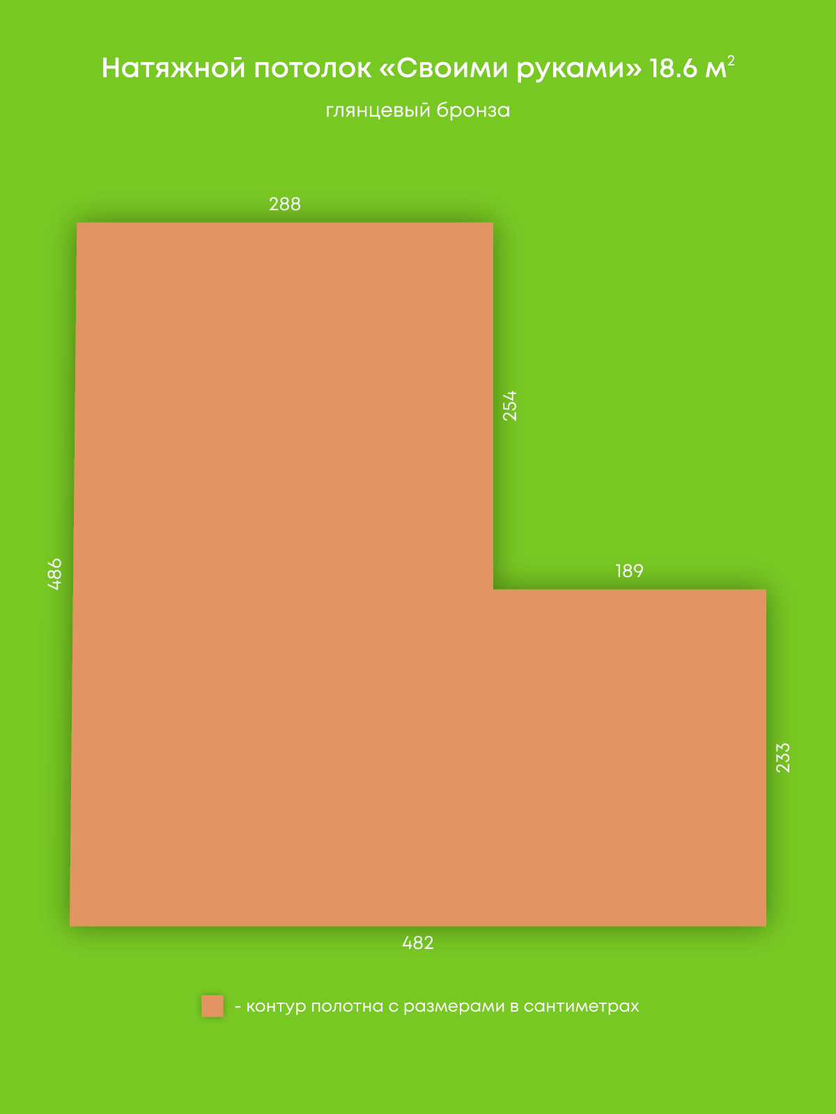 Натяжной потолок бронза глянцевый, изготовленный по индивидуальным размерам покупателя, для помещения площадью 18.6 м2