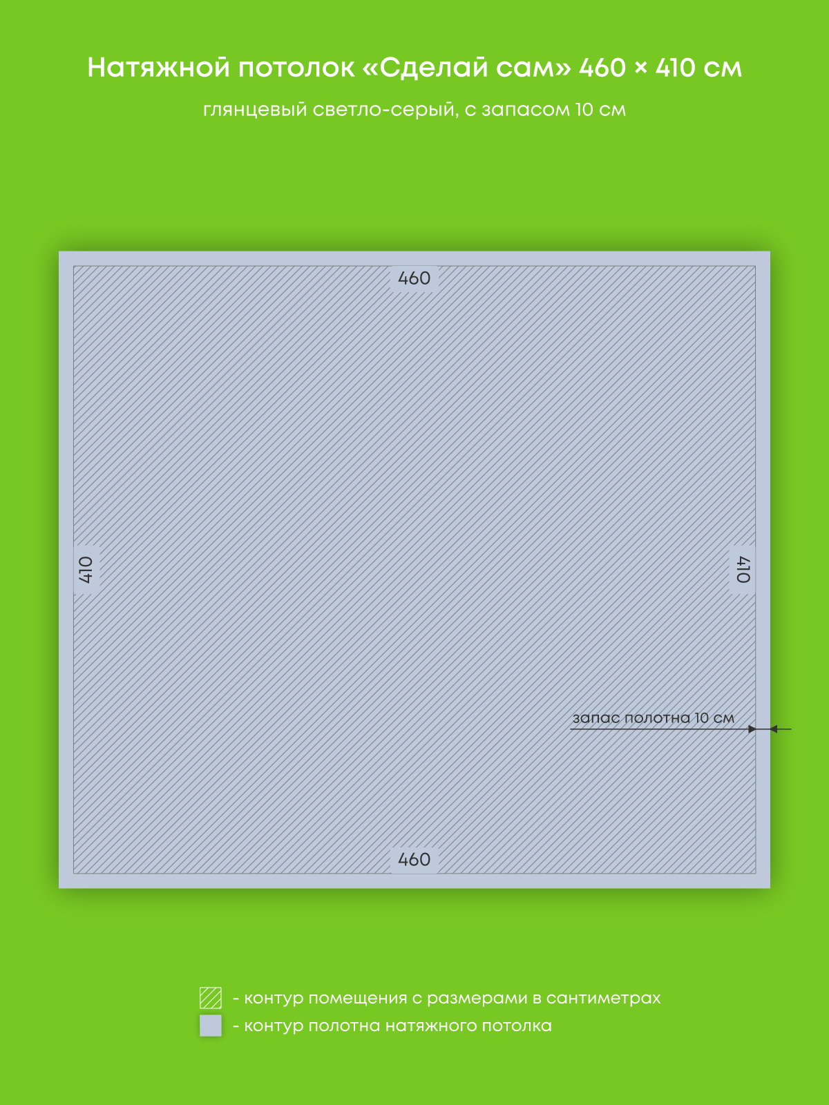 Натяжной потолок светло-серый глянцевый, изготовленный по индивидуальным размерам покупателя, для комнаты площадью 18.9 м2