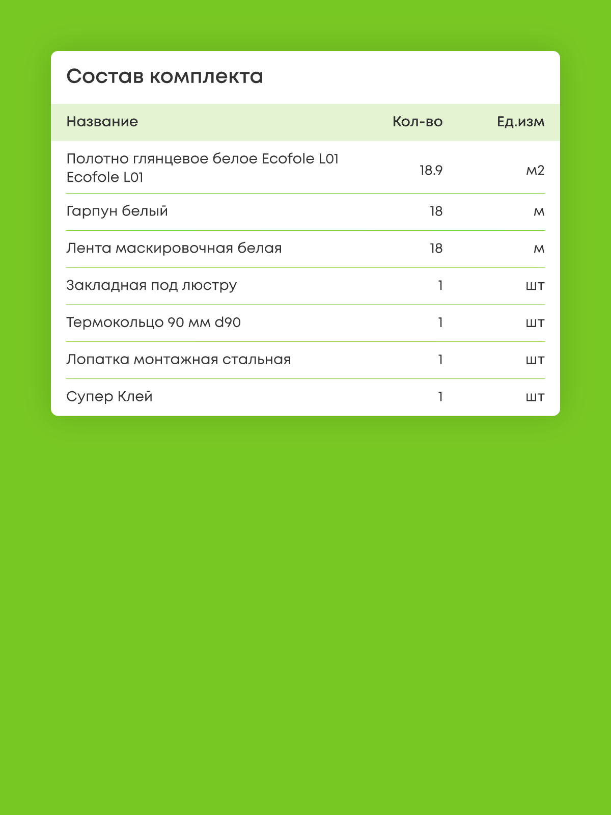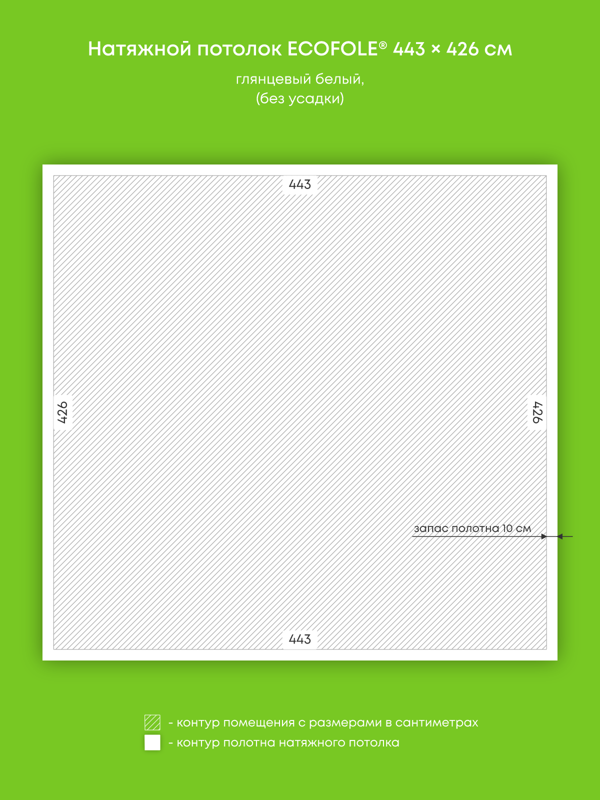 Натяжной потолок белый глянцевый, изготовленный по индивидуальным размерам покупателя, для помещения площадью 18.9 м2