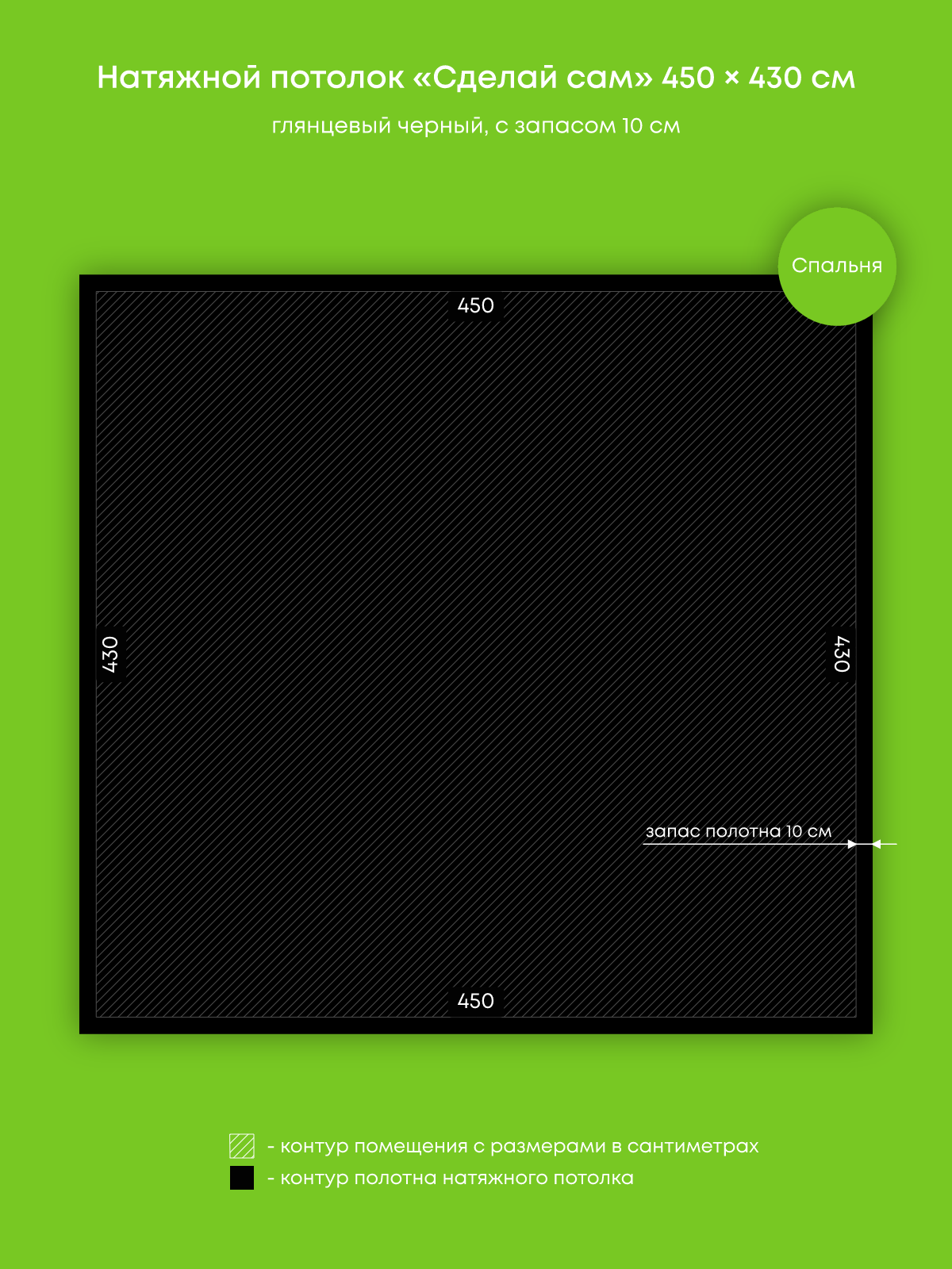 Натяжной потолок черный глянцевый, сделай сам, изготовленный по индивидуальным размерам покупателя, для помещения площадью 19.4 м2