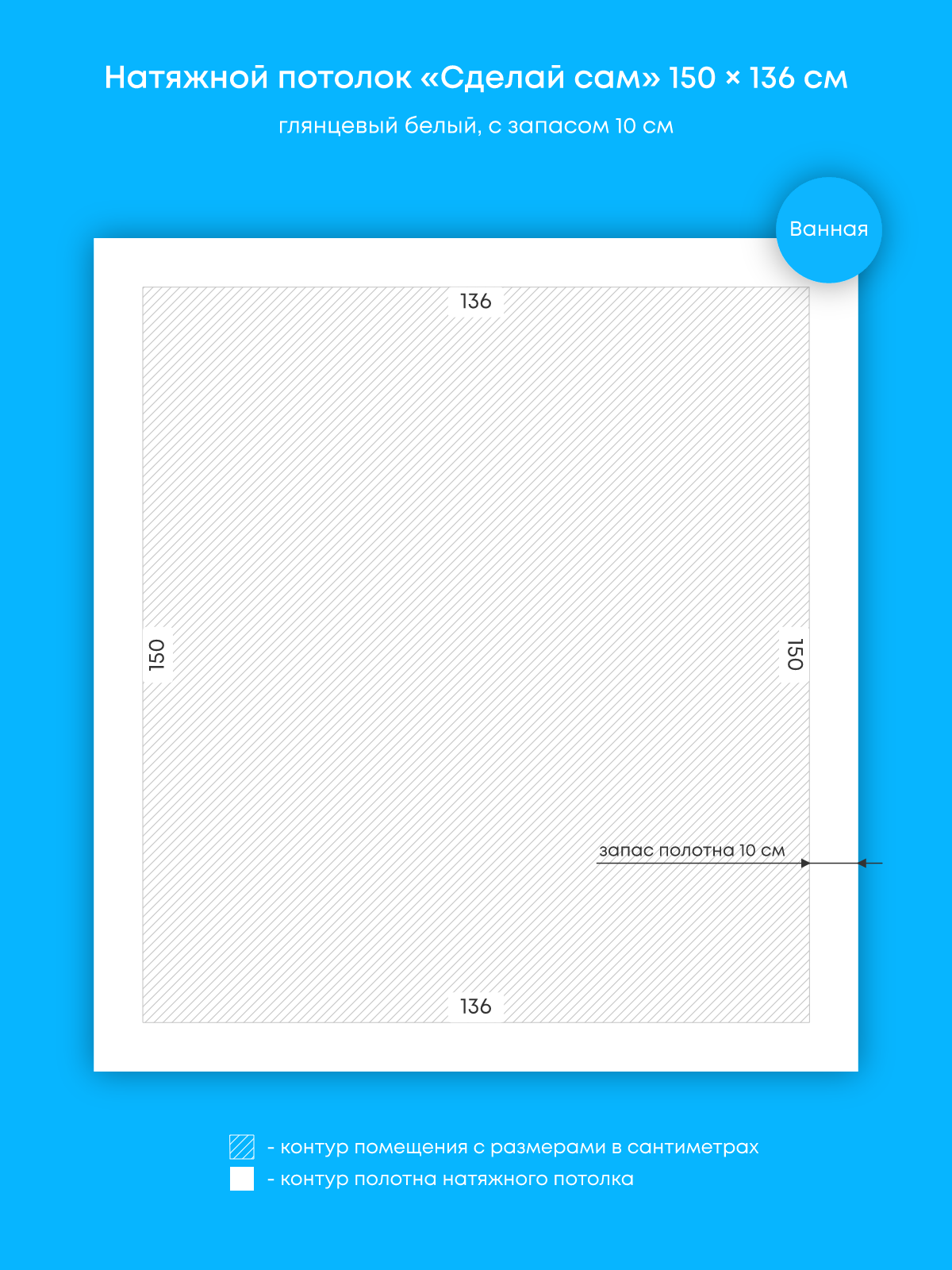 Натяжной потолок белый глянцевый, сделай сам, изготовленный по индивидуальным размерам покупателя, для помещения площадью 2 м2
