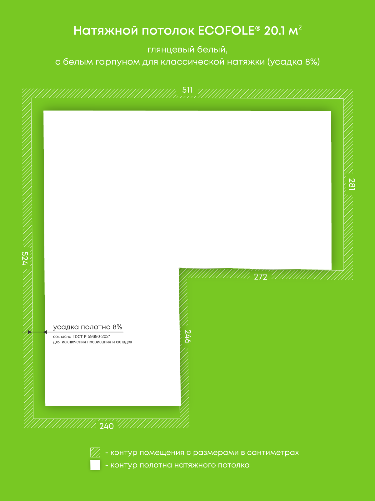 Глянцевый натяжной потолок 20.1 м2