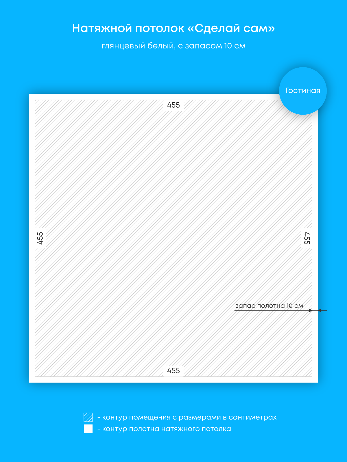 Натяжной потолок белый глянцевый, сделай сам, изготовленный по индивидуальным размерам покупателя, для помещения площадью 20.7 м2