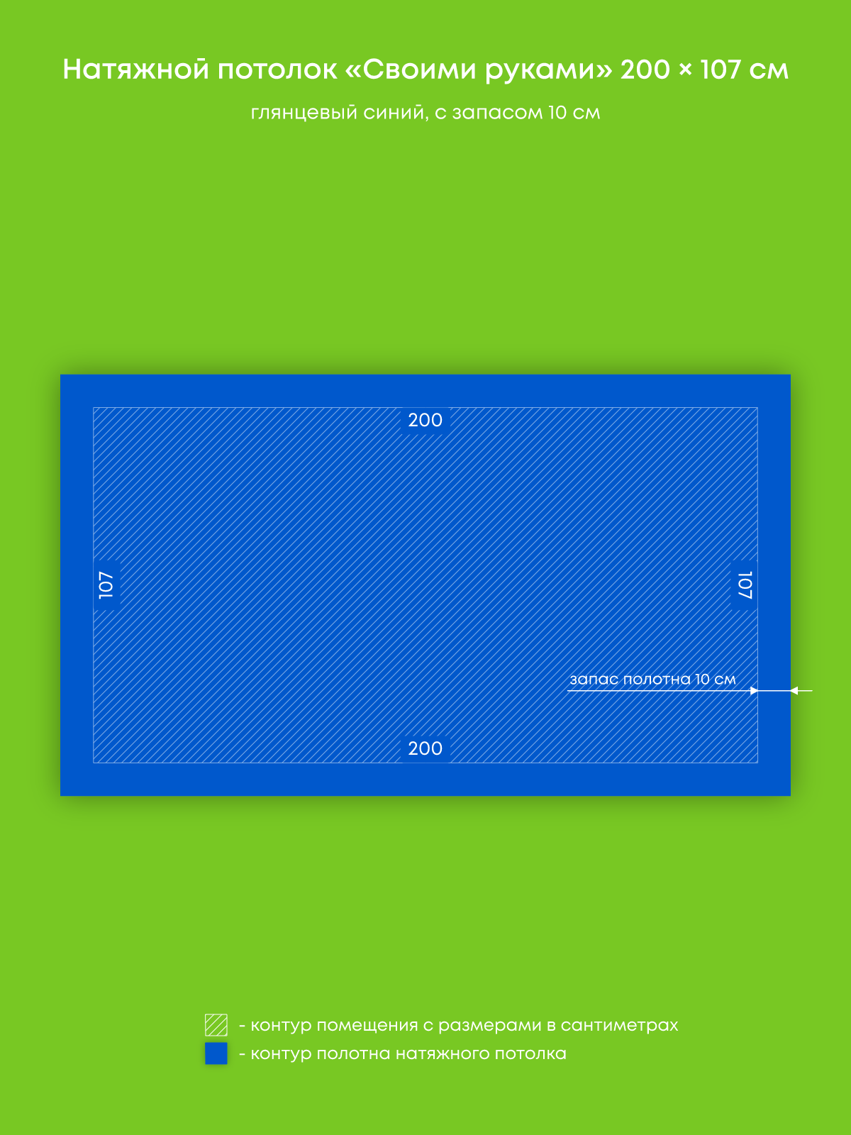 Натяжной потолок синий глянцевый, изготовленный по индивидуальным размерам покупателя, для ванной площадью 2.1 м2