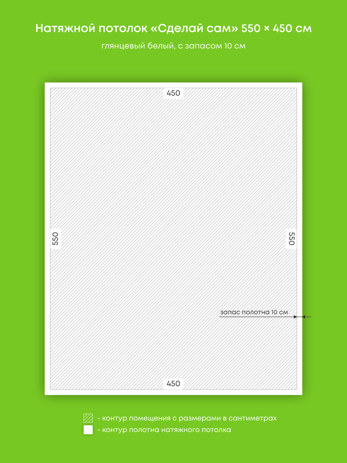 Натяжной потолок белый глянцевый, изготовленный по индивидуальным размерам покупателя, для гостиной площадью 24.8 м2