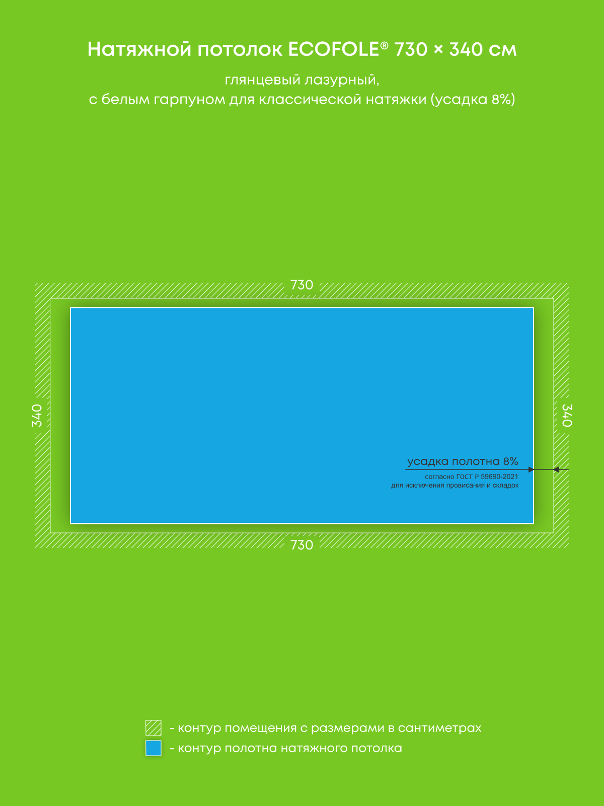 Натяжной потолок лазурный глянцевый, изготовленный по индивидуальным размерам покупателя, для спальни площадью 24.8 м2