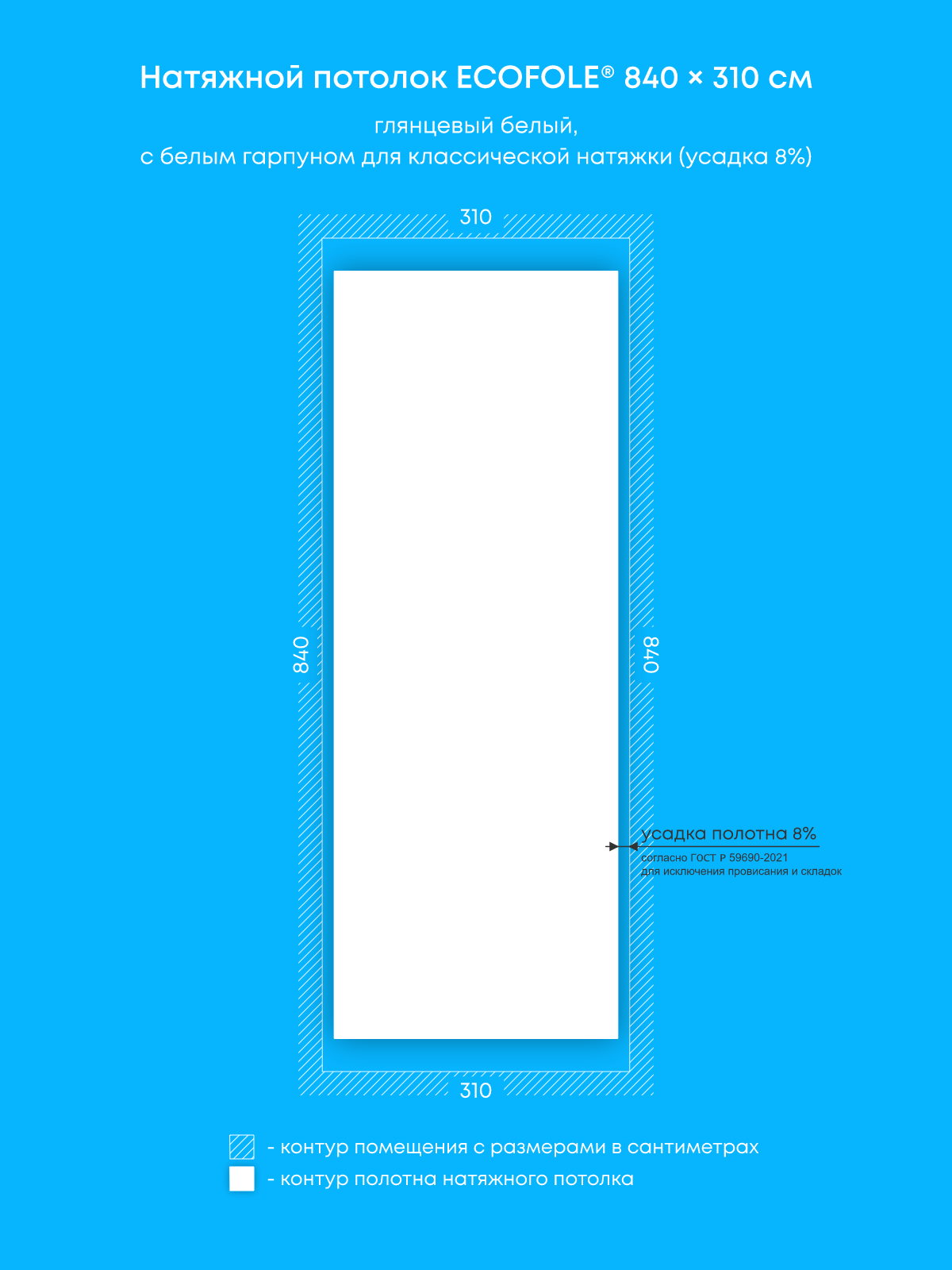 Натяжной потолок белый глянцевый, изготовленный по индивидуальным размерам покупателя, для кухни площадью 26 м2