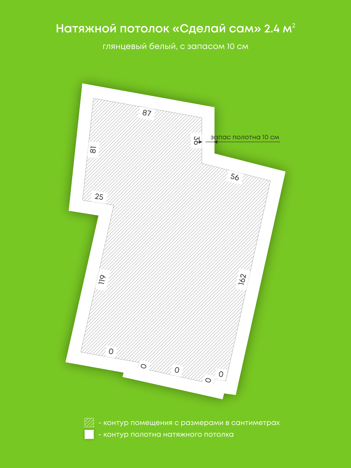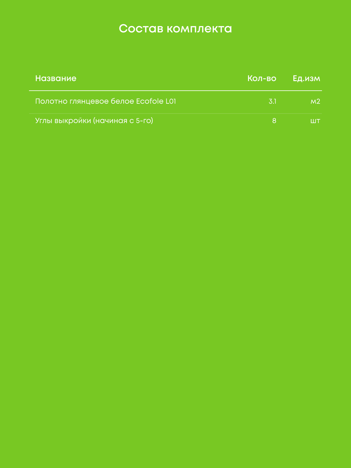 Натяжной потолок белый глянцевый, изготовленный по индивидуальным размерам покупателя, для помещения площадью 3.1 м2