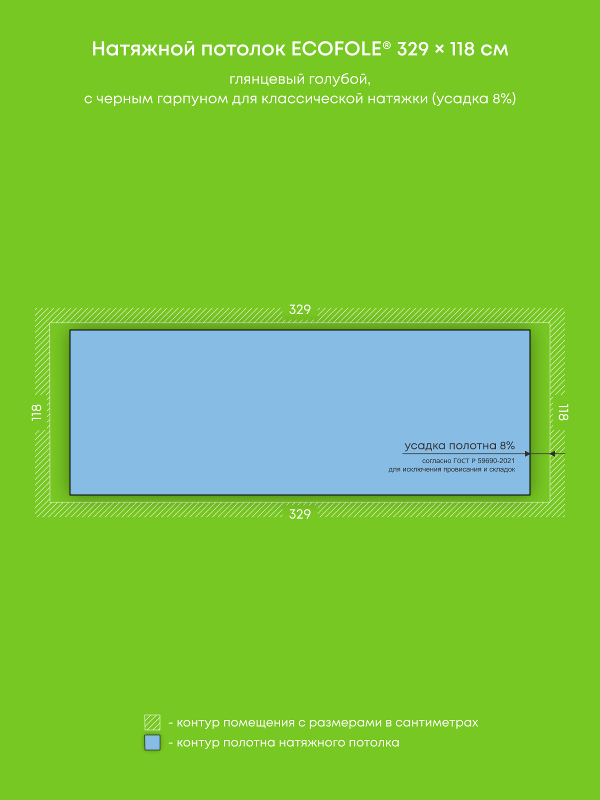 Натяжной потолок голубой глянцевый, изготовленный по индивидуальным размерам покупателя, для помещения площадью 3.9 м2