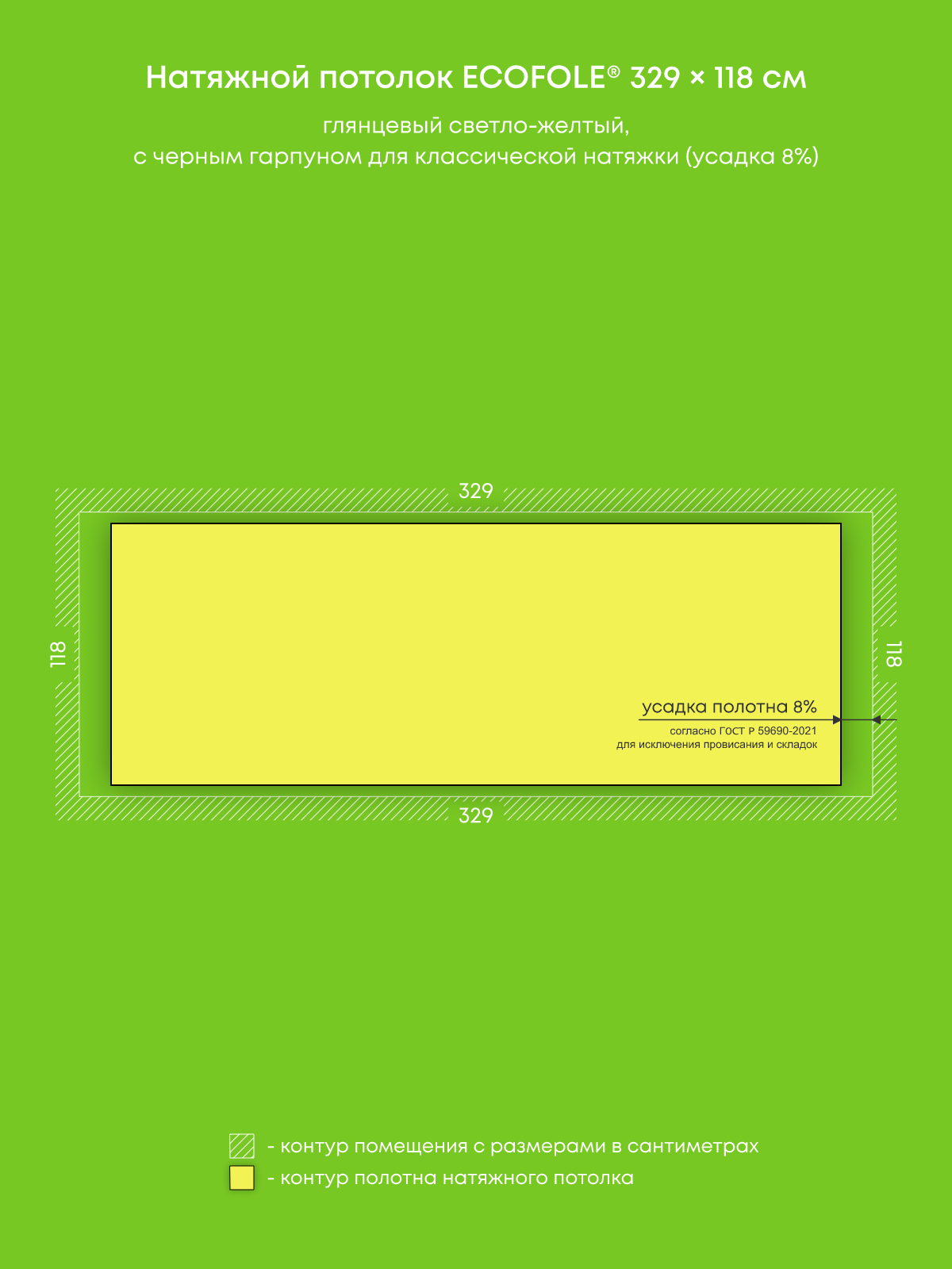 Натяжной потолок светло-желтый глянцевый, изготовленный по индивидуальным размерам покупателя, для помещения площадью 3.9 м2