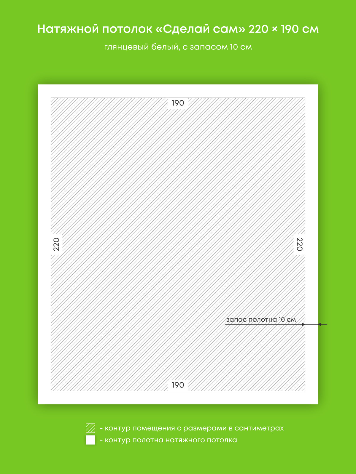 Натяжной потолок белый глянцевый, изготовленный по индивидуальным размерам покупателя, для кухни площадью 4.2 м2