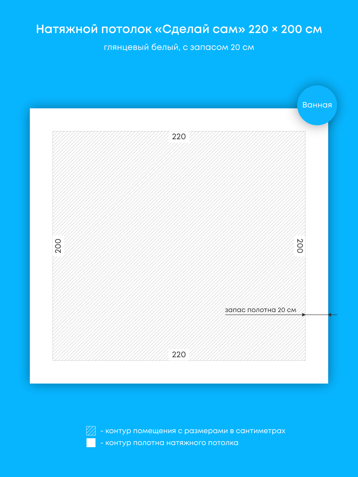 Натяжной потолок белый глянцевый, изготовленный по индивидуальным размерам покупателя, для ванной площадью 4.4 м2