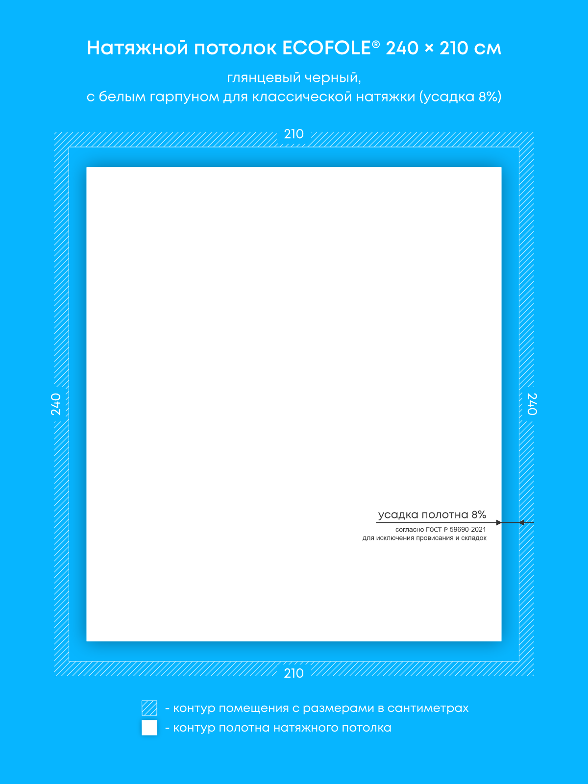 Натяжной потолок черный глянцевый, изготовленный по индивидуальным размерам покупателя, для ванной площадью 5 м2