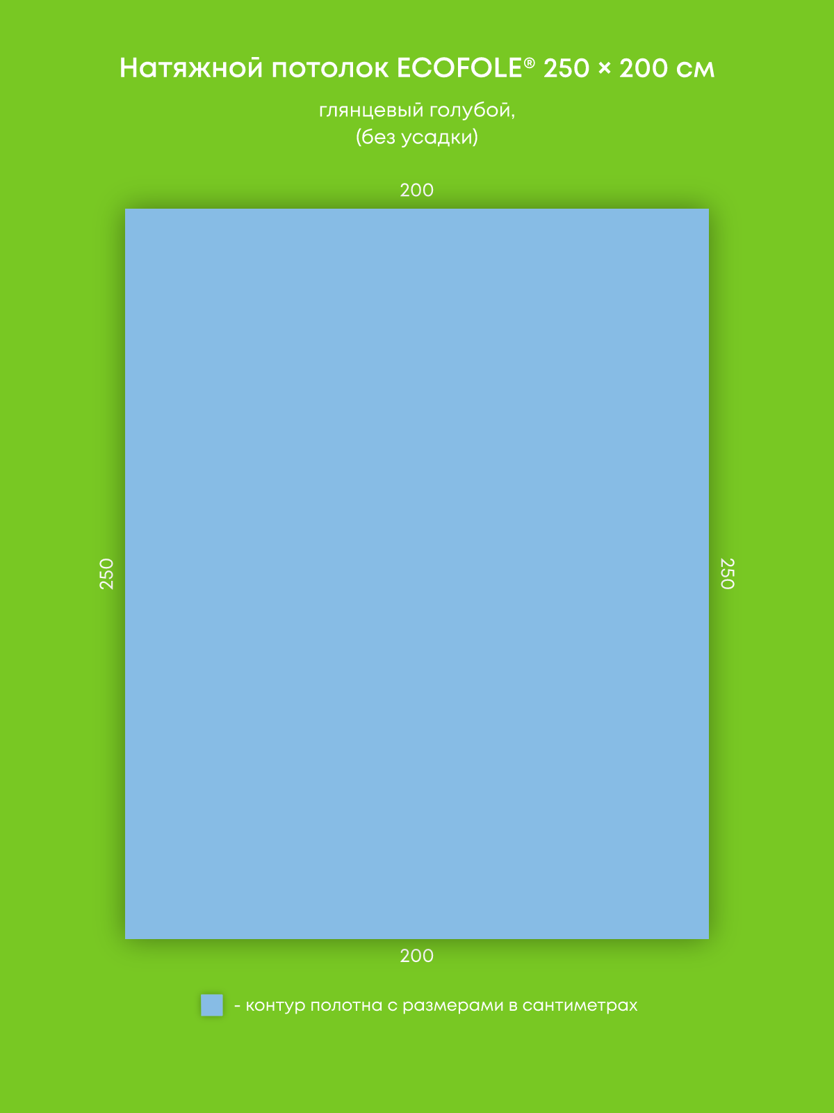 Натяжной потолок голубой глянцевый, изготовленный по индивидуальным размерам покупателя, для помещения площадью 5 м2