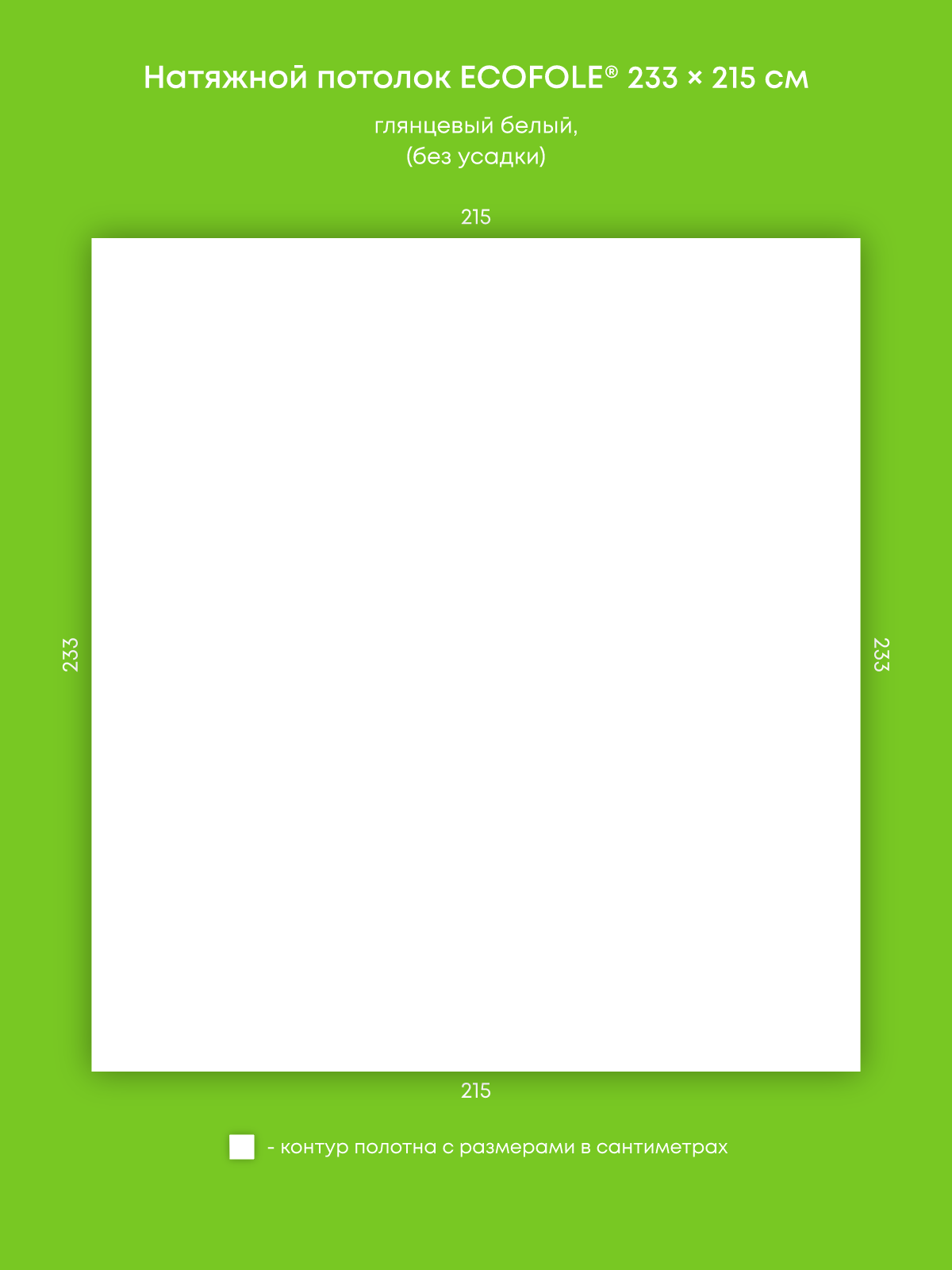 Натяжной потолок белый глянцевый, изготовленный по индивидуальным размерам покупателя, для помещения площадью 5 м2