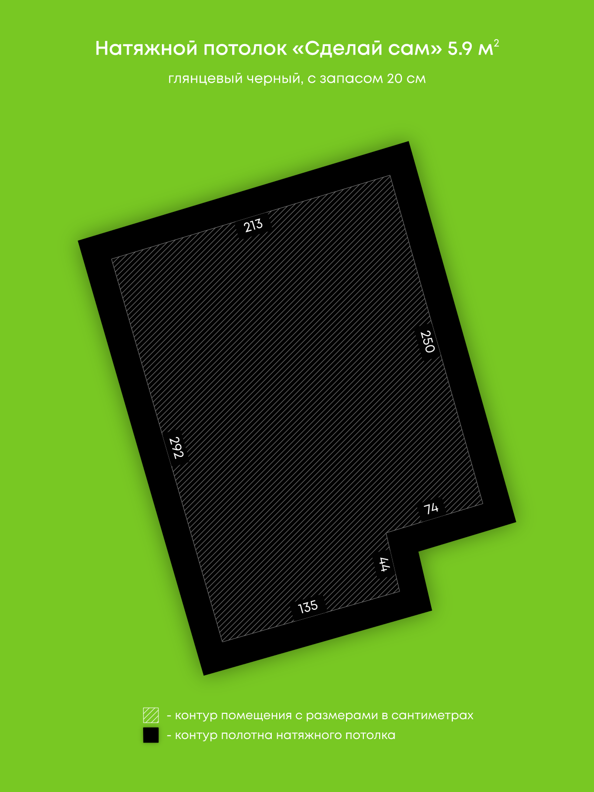 Глянцевый натяжной потолок 5.9 м2
