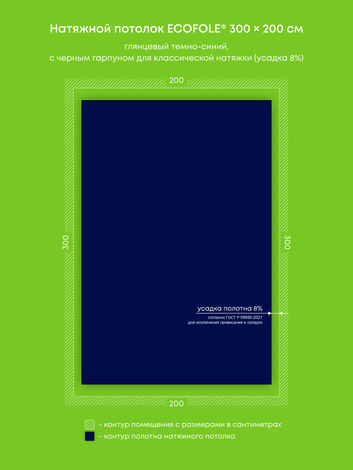 Натяжной потолок темно-синий глянцевый, изготовленный по индивидуальным размерам покупателя, для ванной площадью 6 м2
