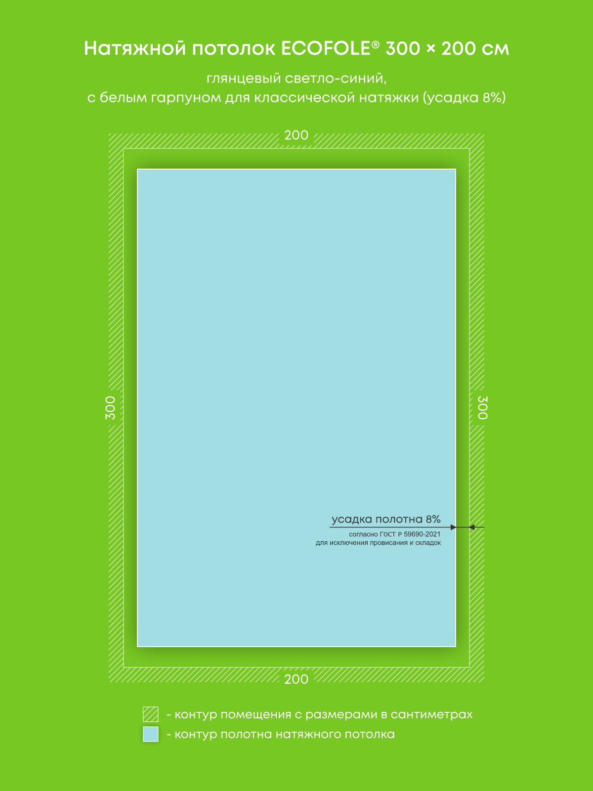 Натяжной потолок светло-синий глянцевый, изготовленный по индивидуальным размерам покупателя, для ванной площадью 6 м2