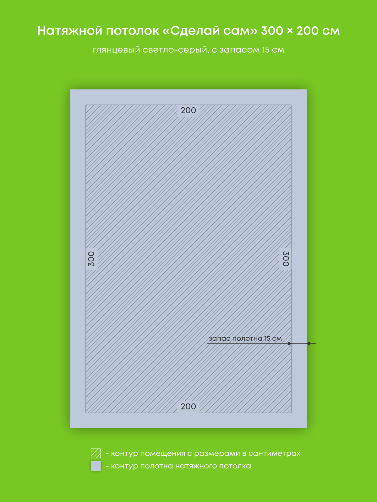 Натяжной потолок светло-серый глянцевый, изготовленный по индивидуальным размерам покупателя, для комнаты площадью 6 м2