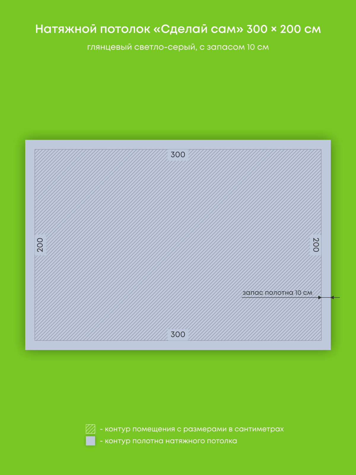 Натяжной потолок светло-серый глянцевый, изготовленный по индивидуальным размерам покупателя, для гостиной площадью 6 м2