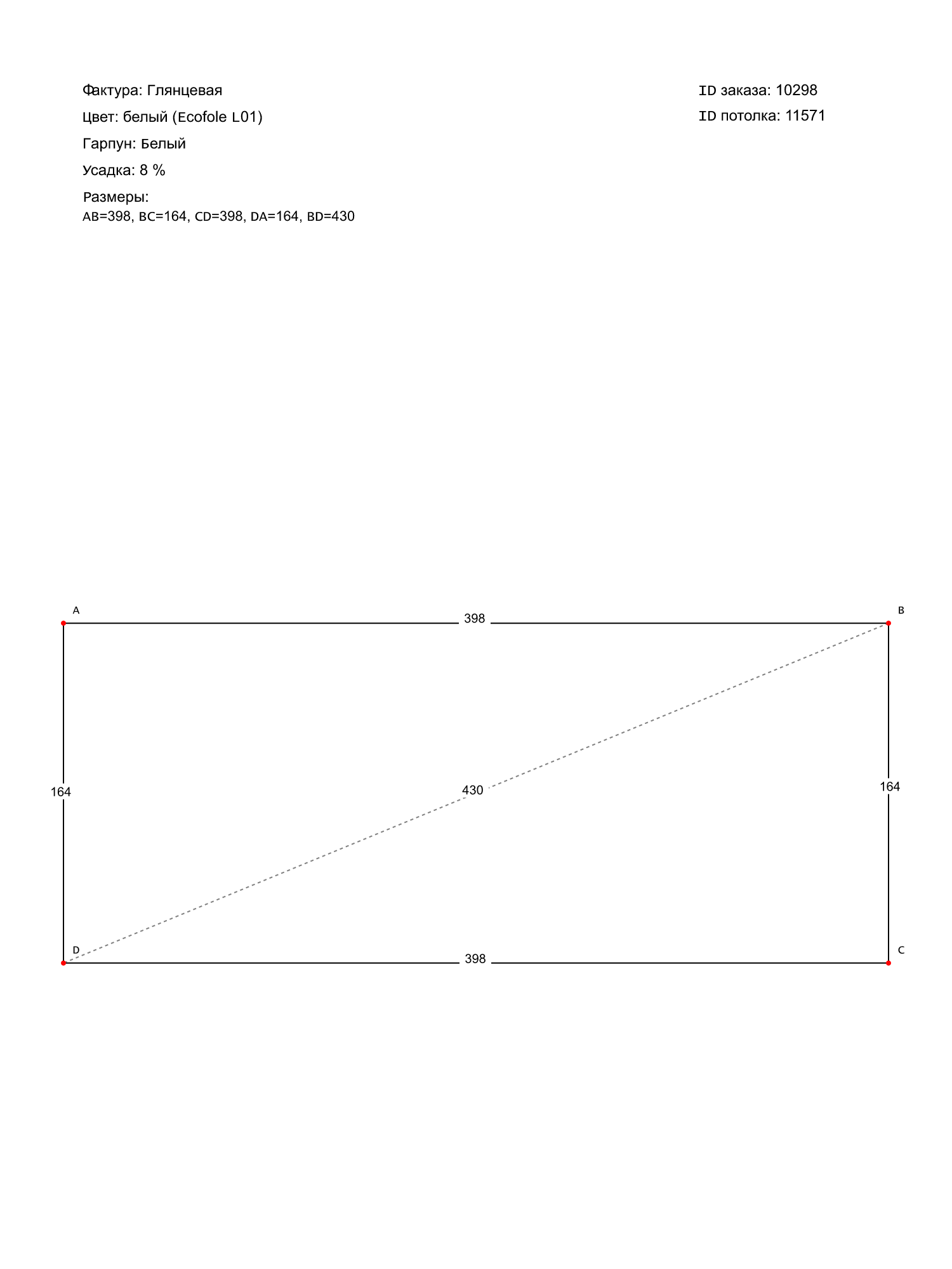 Натяжной потолок белый глянцевый, классической натяжки, изготовленный по индивидуальным размерам покупателя, для помещения площадью 6.5 м2
