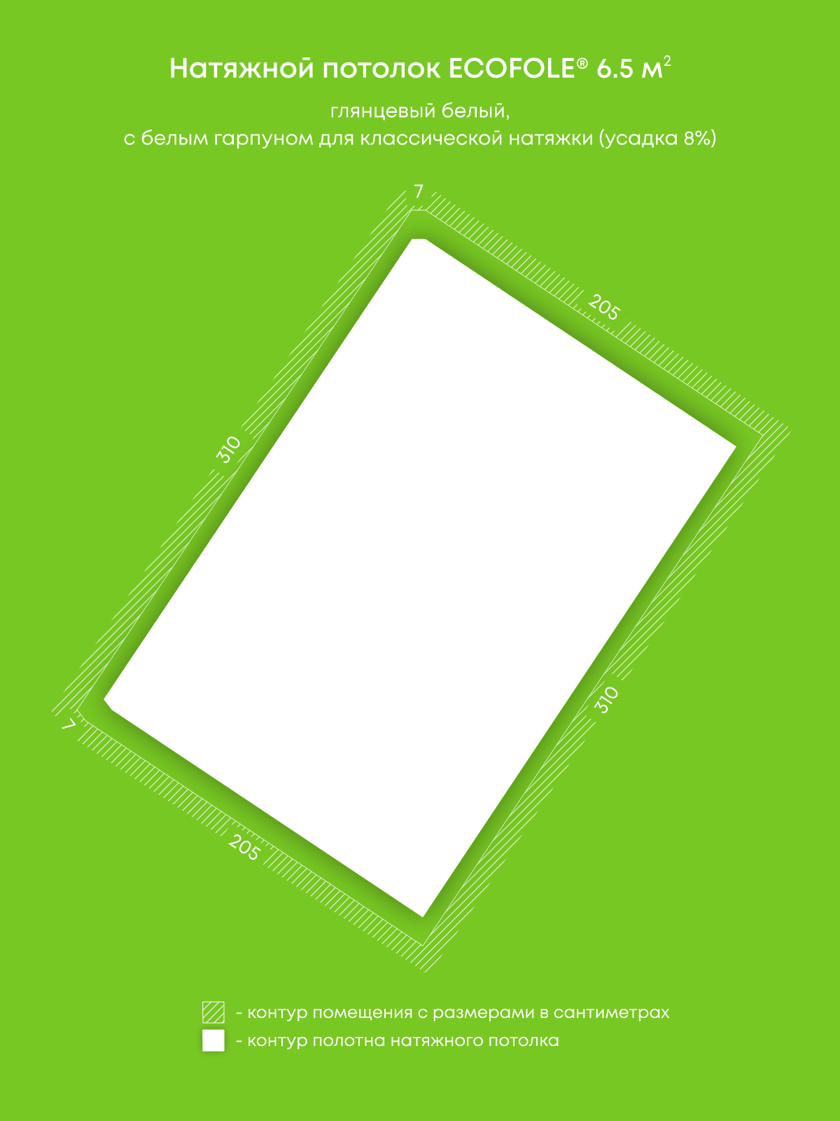 Глянцевый натяжной потолок 6.5 м2