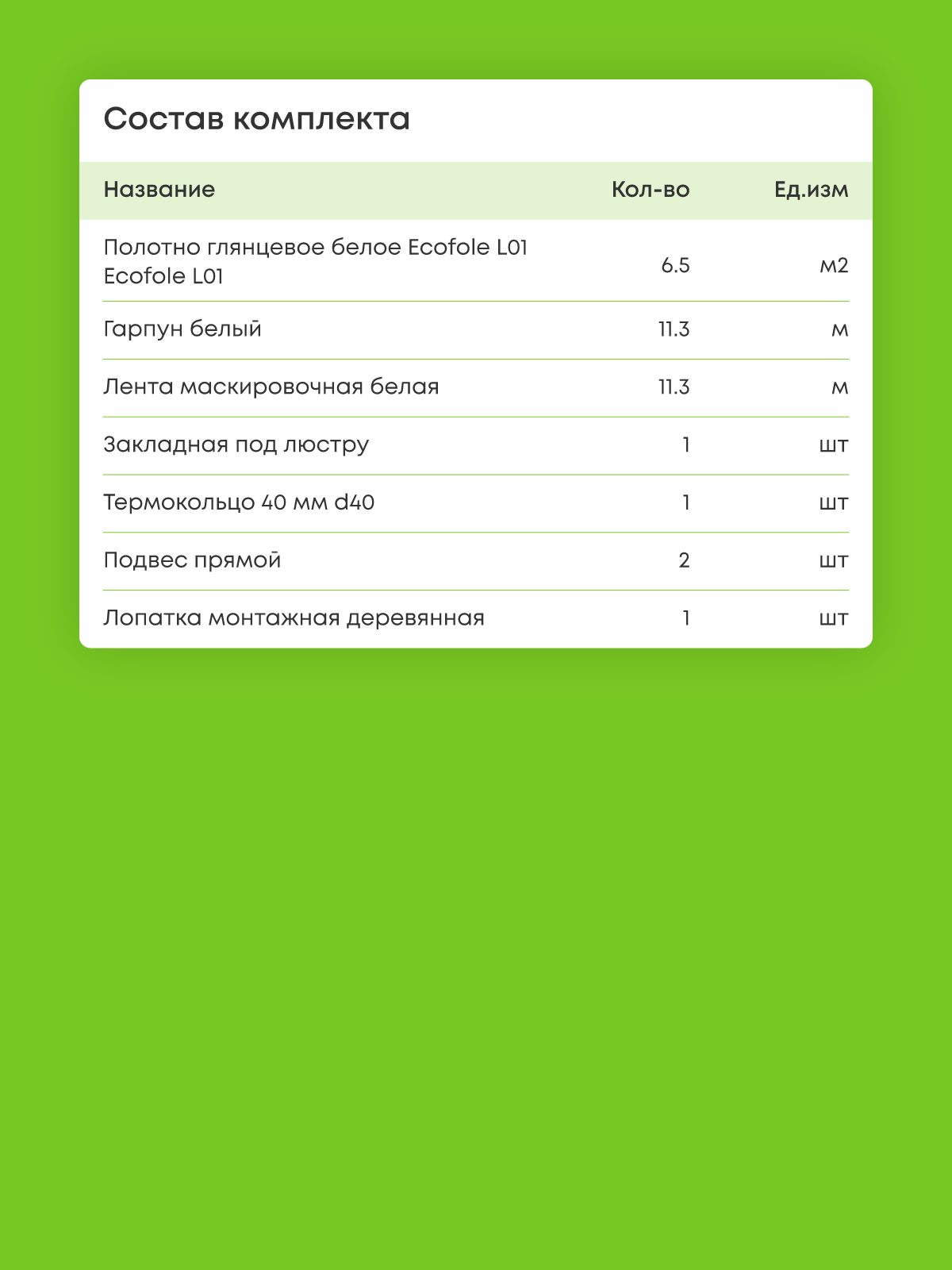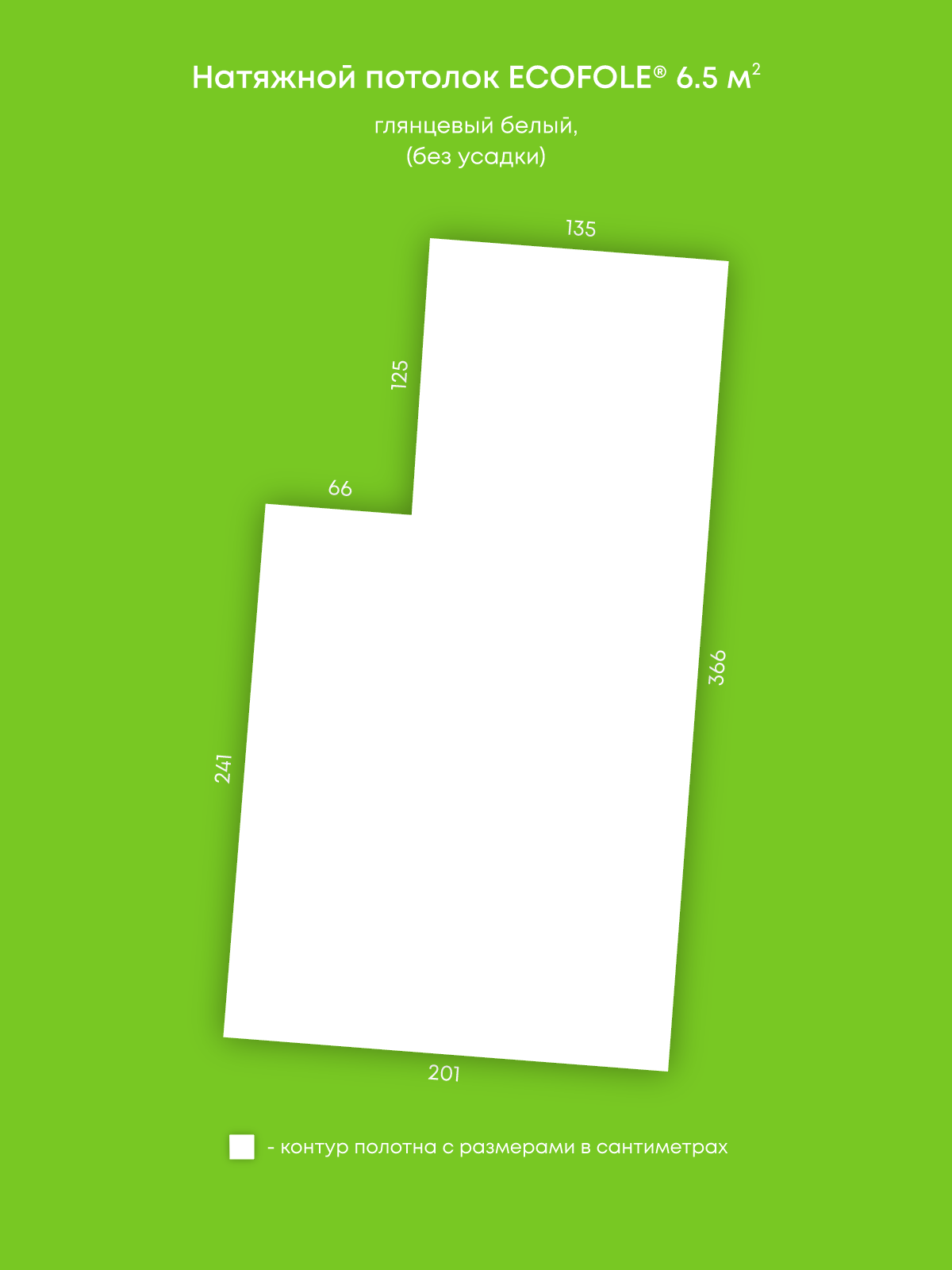 Натяжной потолок белый глянцевый, изготовленный по индивидуальным размерам покупателя, для помещения площадью 6.5 м2