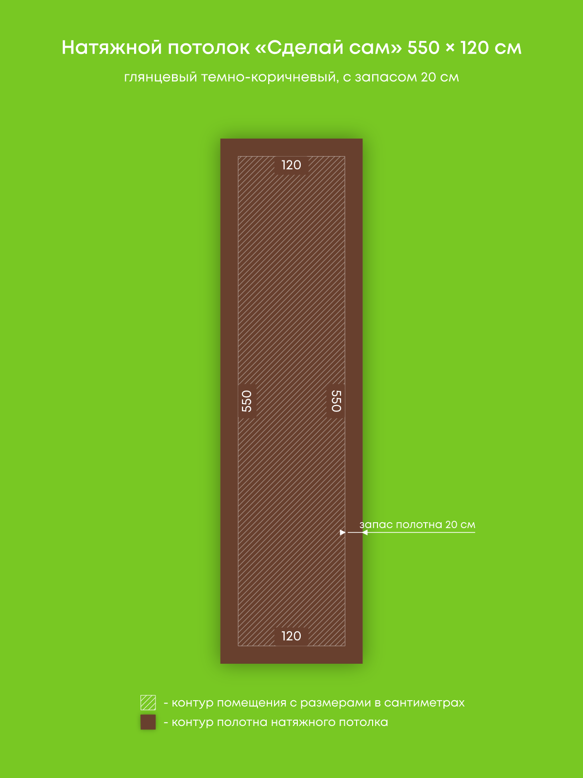 Натяжной потолок темно-коричневый глянцевый, изготовленный по индивидуальным размерам покупателя, для помещения площадью 6.6 м2