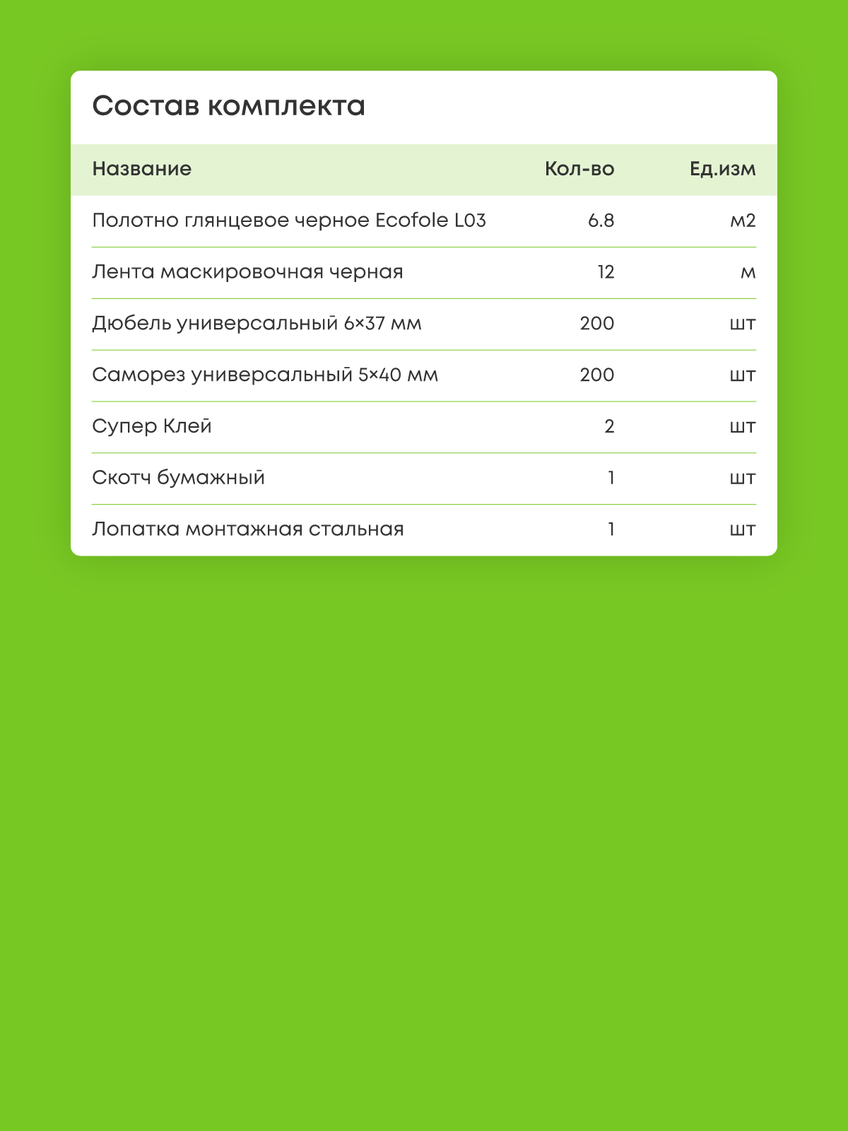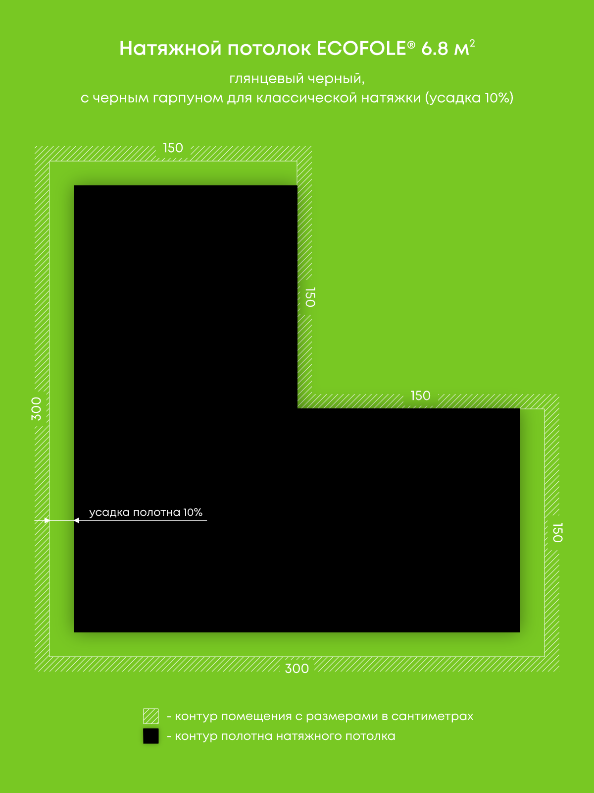 Натяжной потолок черный глянцевый, изготовленный по индивидуальным размерам покупателя, для помещения площадью 6.8 м2