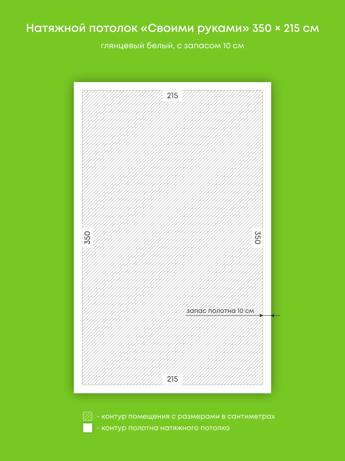 Натяжной потолок белый глянцевый, изготовленный по индивидуальным размерам покупателя, для помещения площадью 7.5 м2