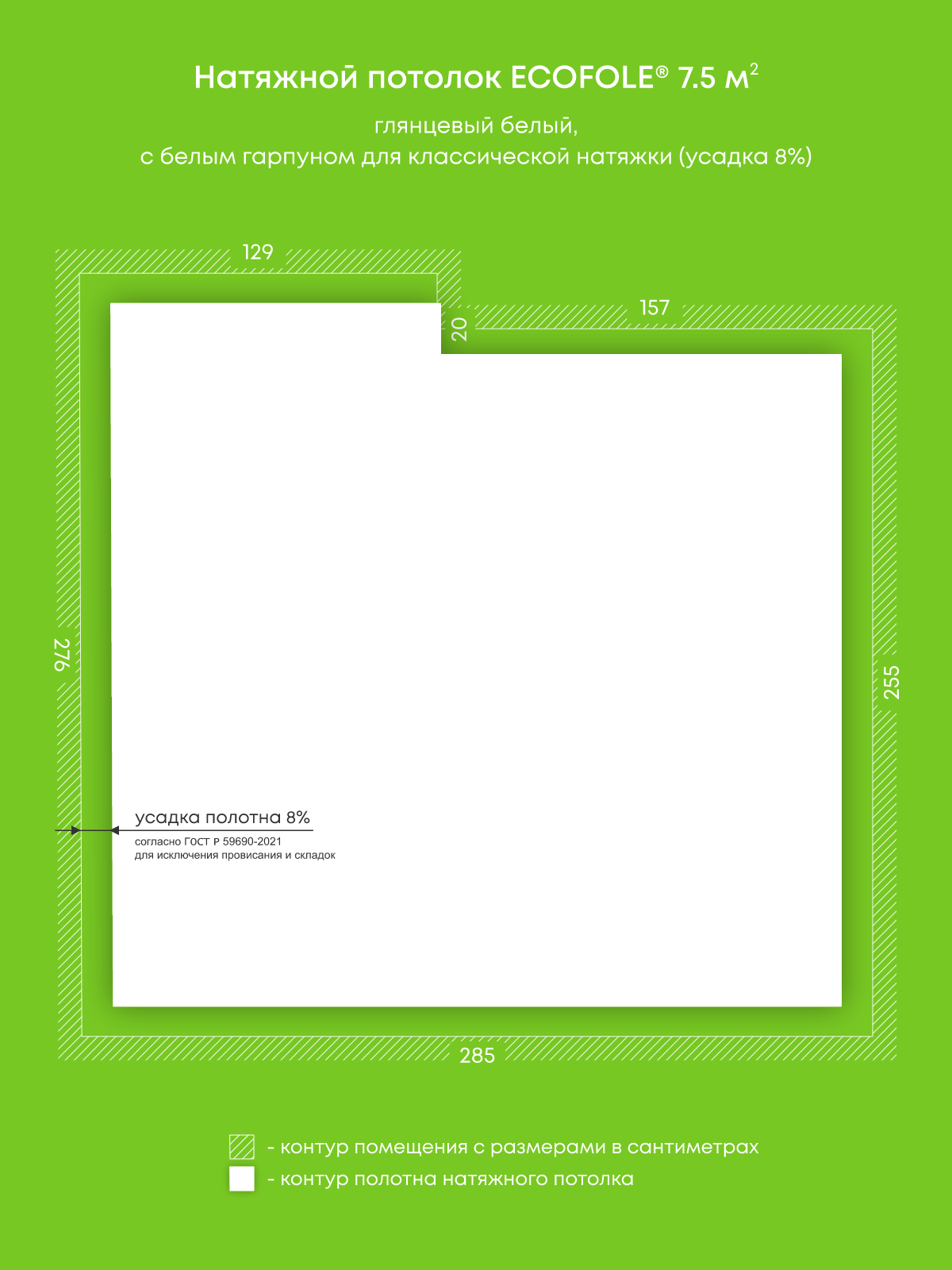 Глянцевый натяжной потолок 7.5 м2