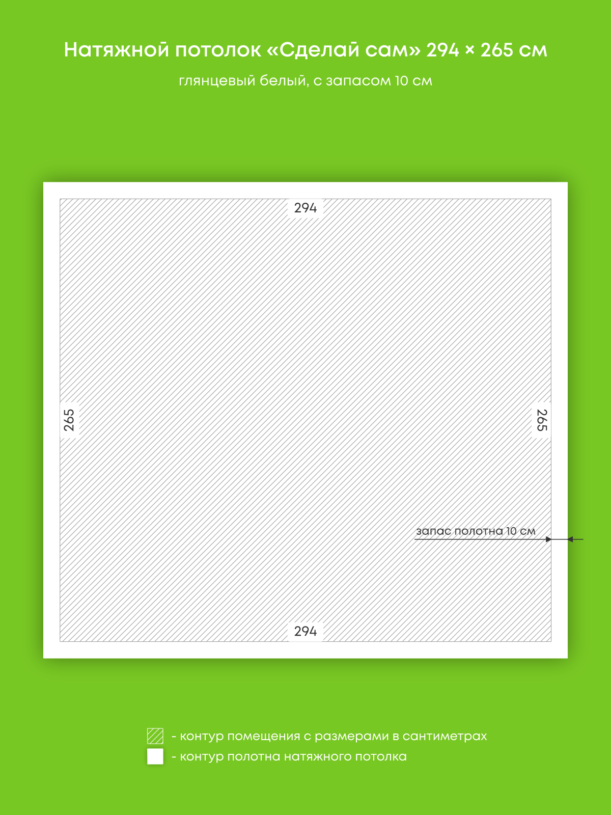 Натяжной потолок белый глянцевый, изготовленный по индивидуальным размерам покупателя, для комнаты площадью 7.8 м2