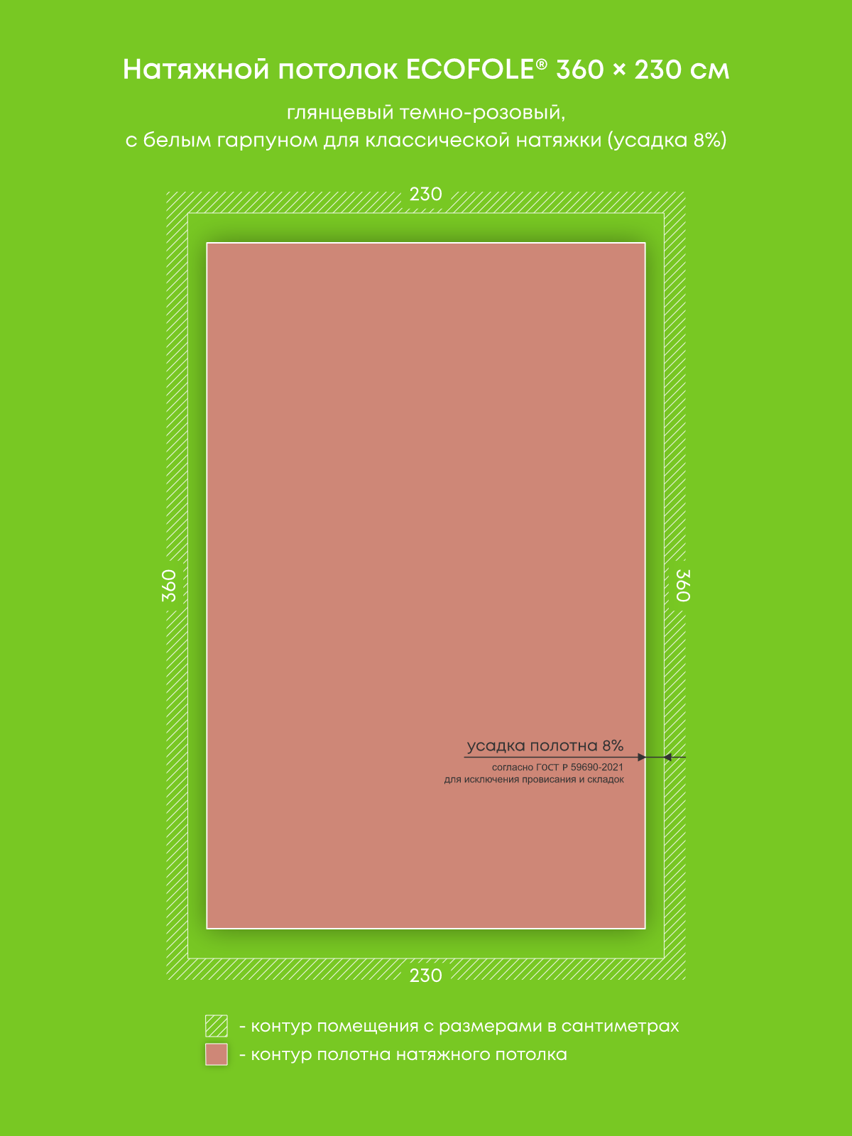 Натяжной потолок темно-розовый глянцевый, изготовленный по индивидуальным размерам покупателя, для кухни площадью 8.3 м2