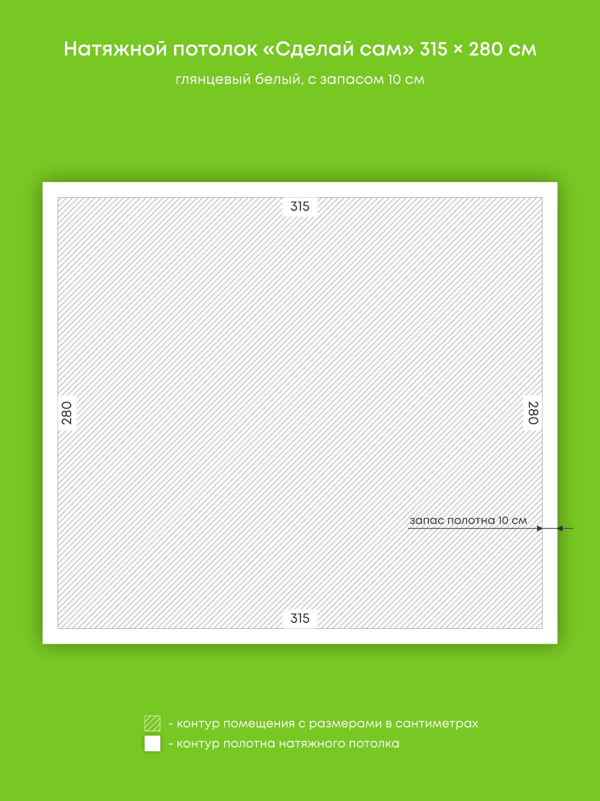 Натяжной потолок белый глянцевый, изготовленный по индивидуальным размерам покупателя, для помещения площадью 8.8 м2