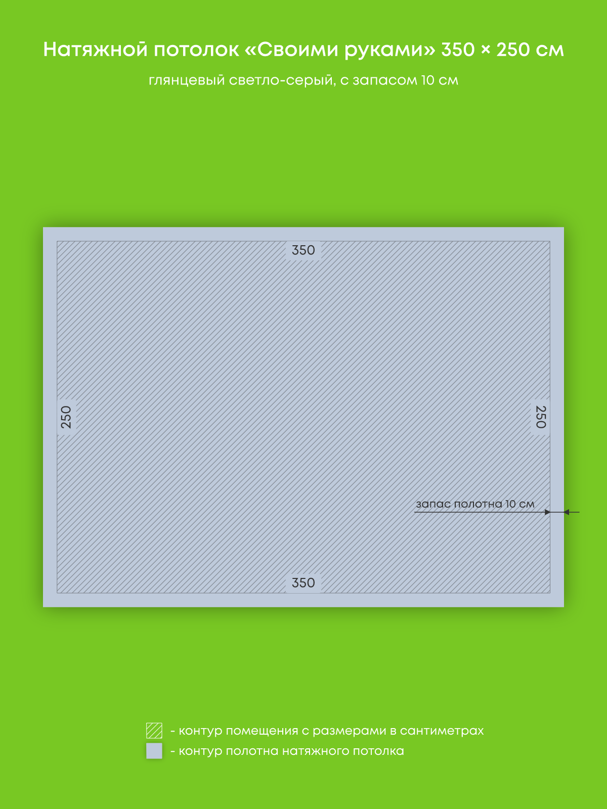 Натяжной потолок светло-серый глянцевый, изготовленный по индивидуальным размерам покупателя, для комнаты площадью 8.8 м2