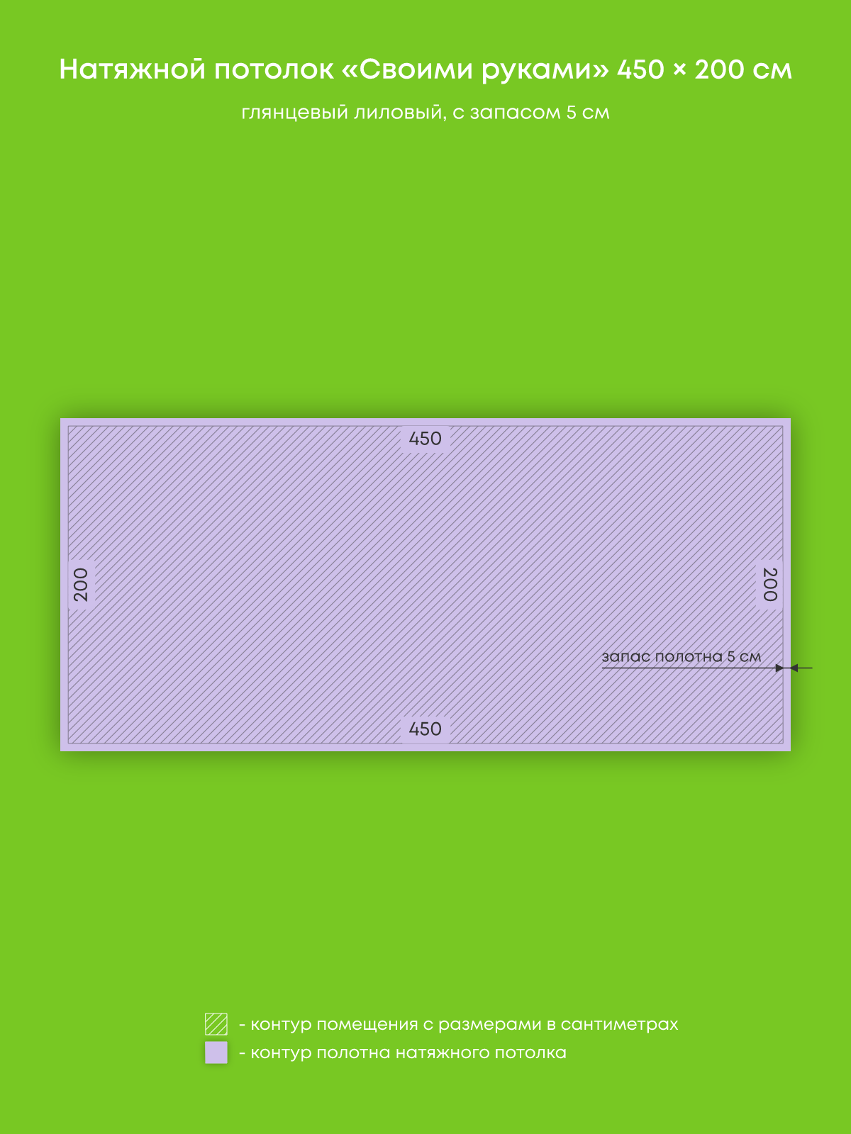 Натяжной потолок лиловый глянцевый, изготовленный по индивидуальным размерам покупателя, для кухни площадью 9 м2