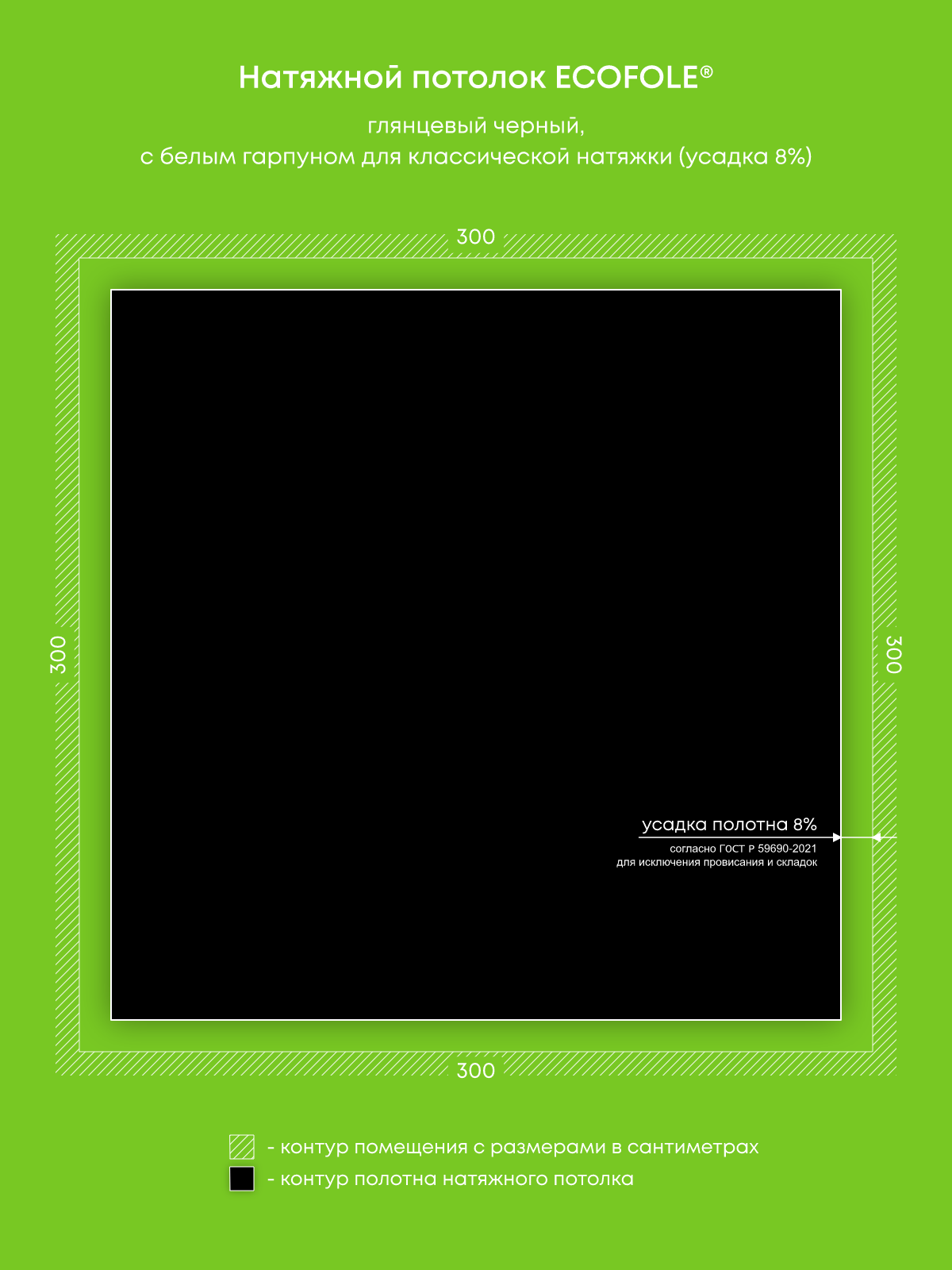 Натяжной потолок черный глянцевый, изготовленный по индивидуальным размерам покупателя, для помещения площадью 9 м2