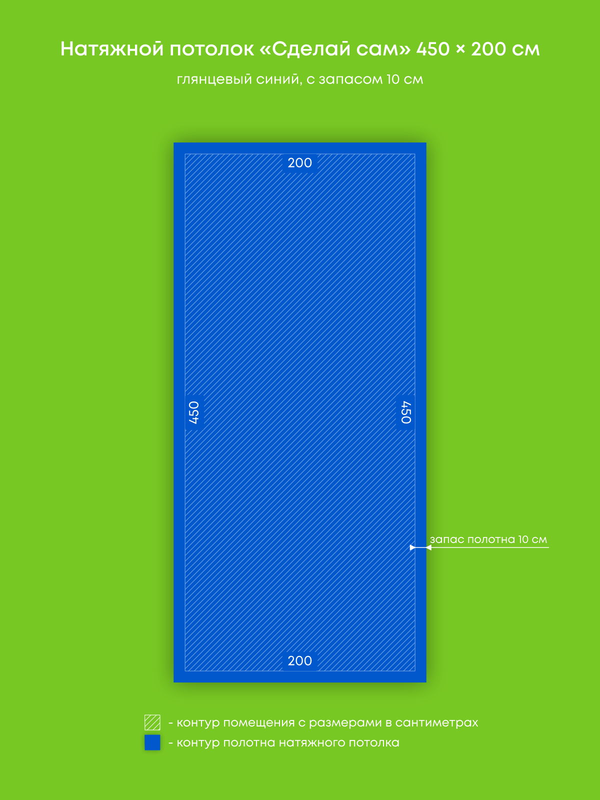 Натяжной потолок синий глянцевый, изготовленный по индивидуальным размерам покупателя, для помещения площадью 9.7 м2
