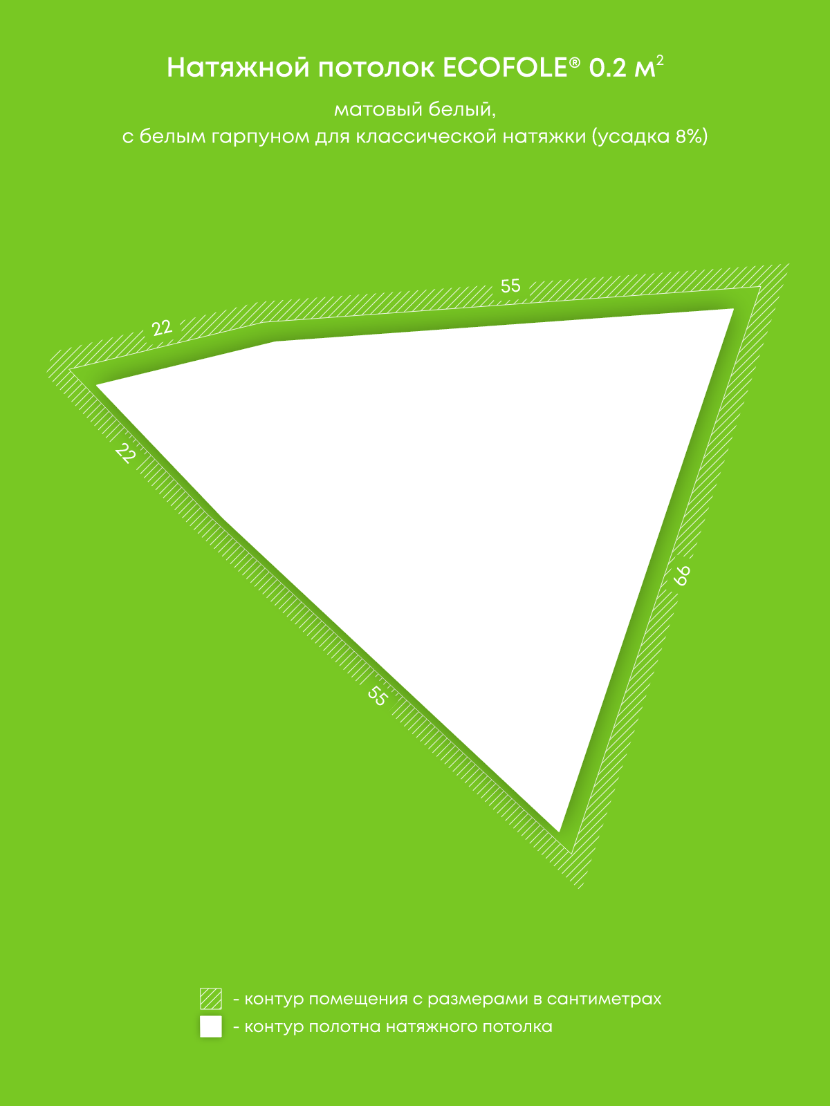 Натяжной потолок белый матовый, изготовленный по индивидуальным размерам покупателя, для кухни площадью 0.2 м2