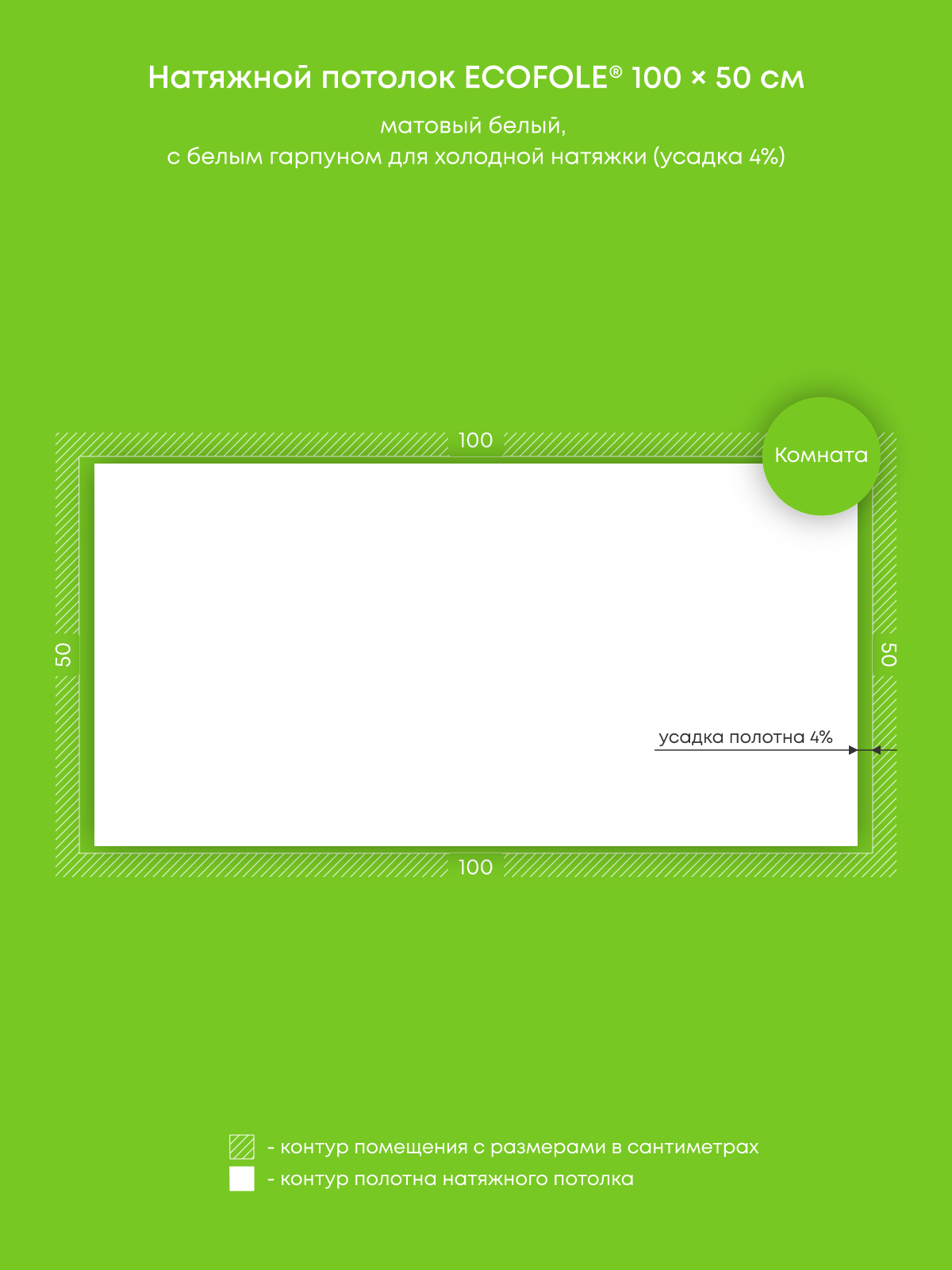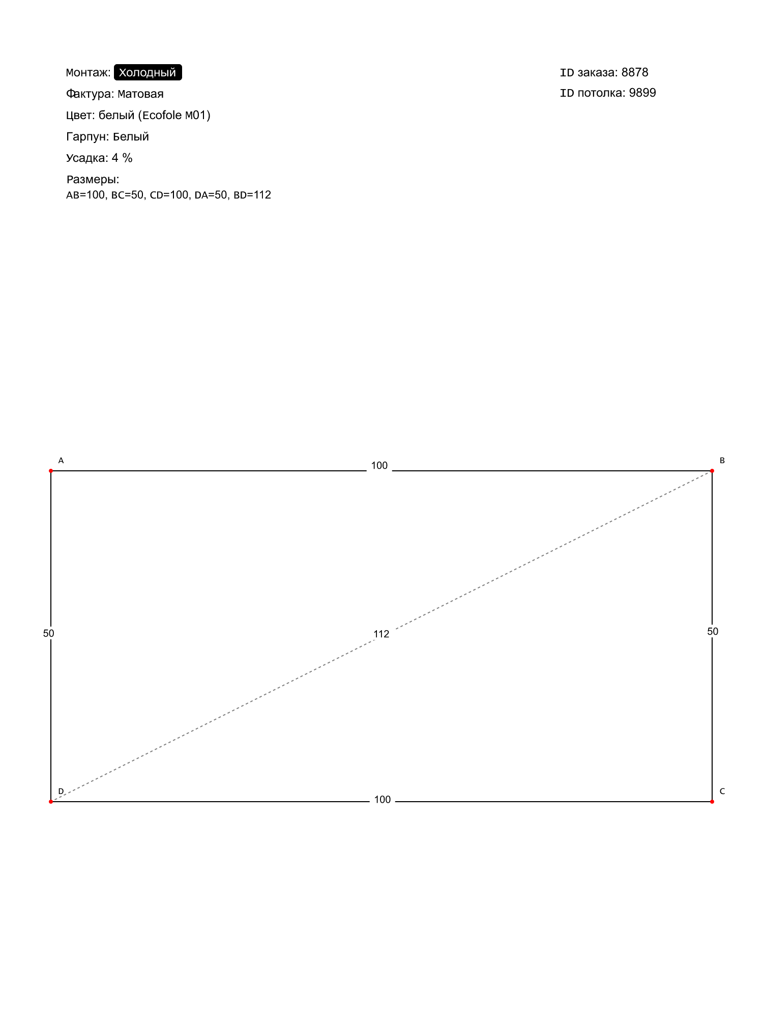 Натяжной потолок белый матовый, холодной натяжки, изготовленный по индивидуальным размерам покупателя, для помещения площадью 0.5 м2